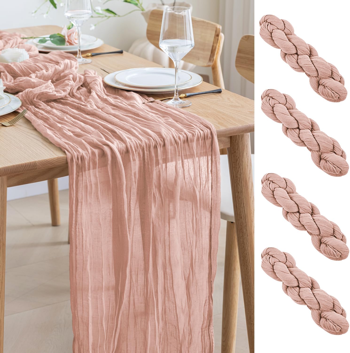 Asee'm 4pcs Cheesecloth Table Runner 120 Inches Dusty Pink Boho Gauze Cheese Cloth Runner 10FT Rustic Sheer Table Runners for Summer Wedding Baby Shower Holiday Party Decoration