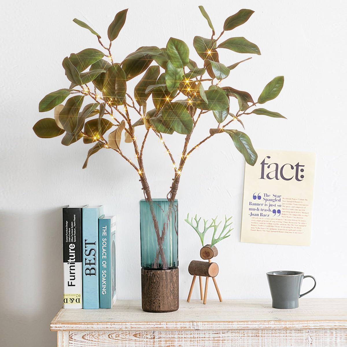 - ๐ฟ Spring Decor: 2024 NEW designed Magnolia branch lights,32in tall with 60 LED fairy lights,greenery leaves have realistic veining and detail, bringing the look of nature to your home,Great gift for valentines