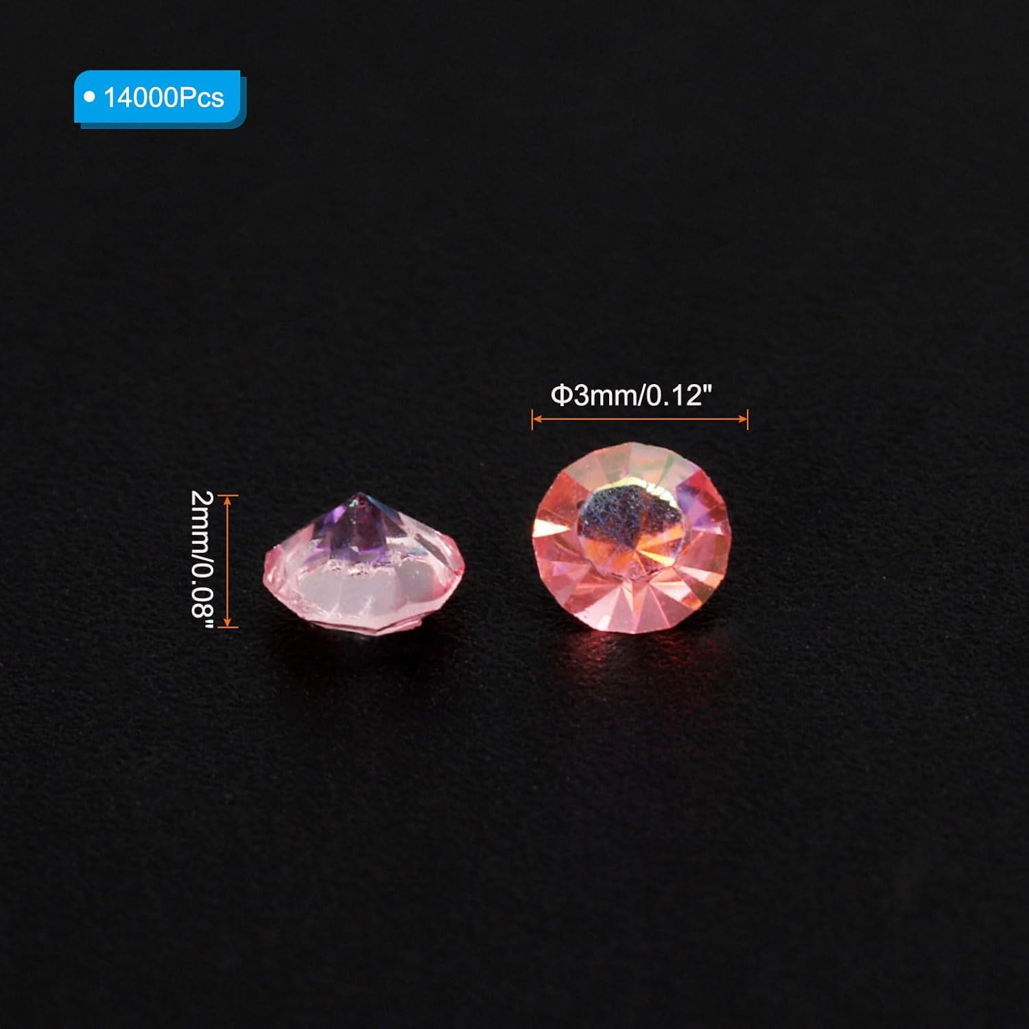 - Color: Dark Pink AB; Material: Acrylic; Size: 3mm x 2mm/ 0.12 x 0.08 inch (Dia.x H); Packing List: 14000Pcs x Acrylic crystal diamonds