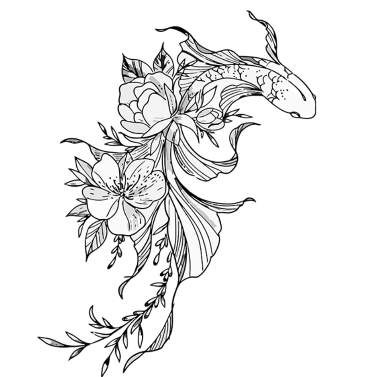 INKARTLINK Tattoo Tech, 2 Sheets Medium Semi Permanent Tattoo, Adult Art Design Temporary Tattoos, Lasts 1-2 Weeks, Waterproof, Realistic Look, No Adhesive, No Reflection (Lucky Fish Design)