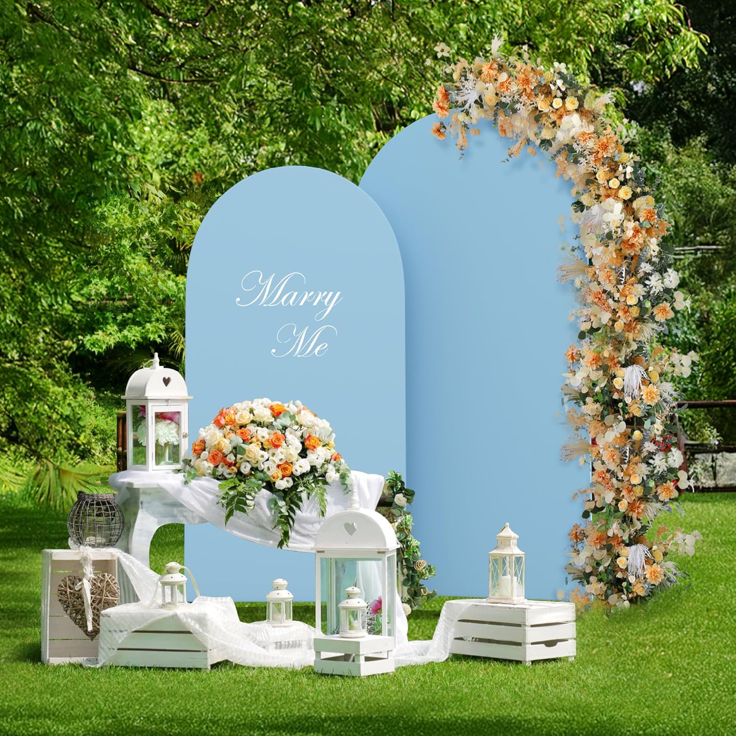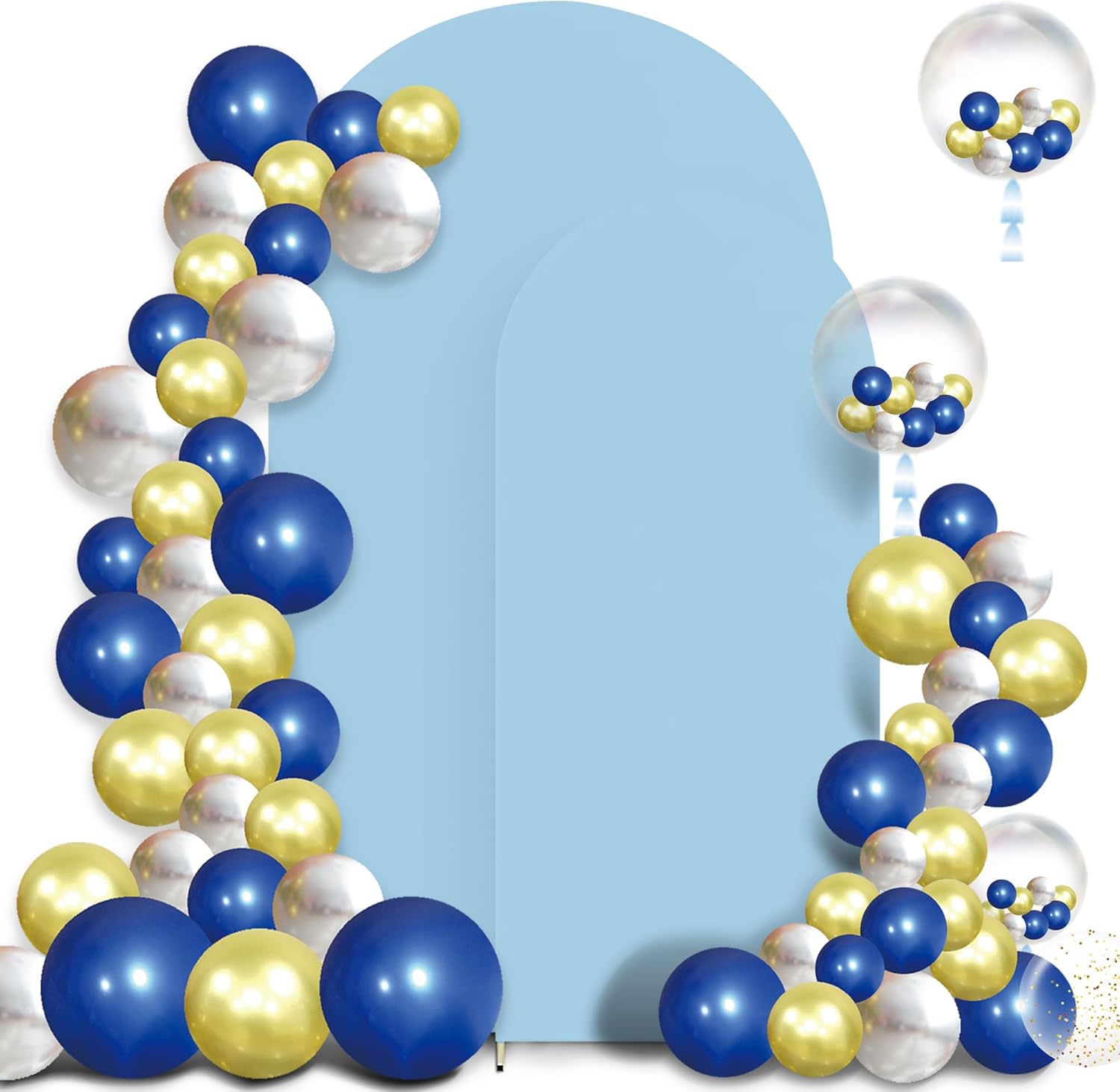 - Round Top Arch Cover: These backdrop covers are made of 85% polyester and 15% spandex. Color: dusty blue. Size: 6ft x 2.6ft (HxW) and 7.2ft x 4ft (HxW). The Chiara arch stand cover is designed with a round top. Placed in the garden lawn, it perfectly matches the arched background frame. Thus, it can better decorate your gatherings and ceremonies and add a festive atmosphere. ๐๐จ๐ญ๐: ๐๐ซ๐๐ก ๐๐ซ๐๐ฆ๐ ๐ง๐จ๐ญ ๐ข๐ง๐๐ฅ๐ฎ๐๐๐