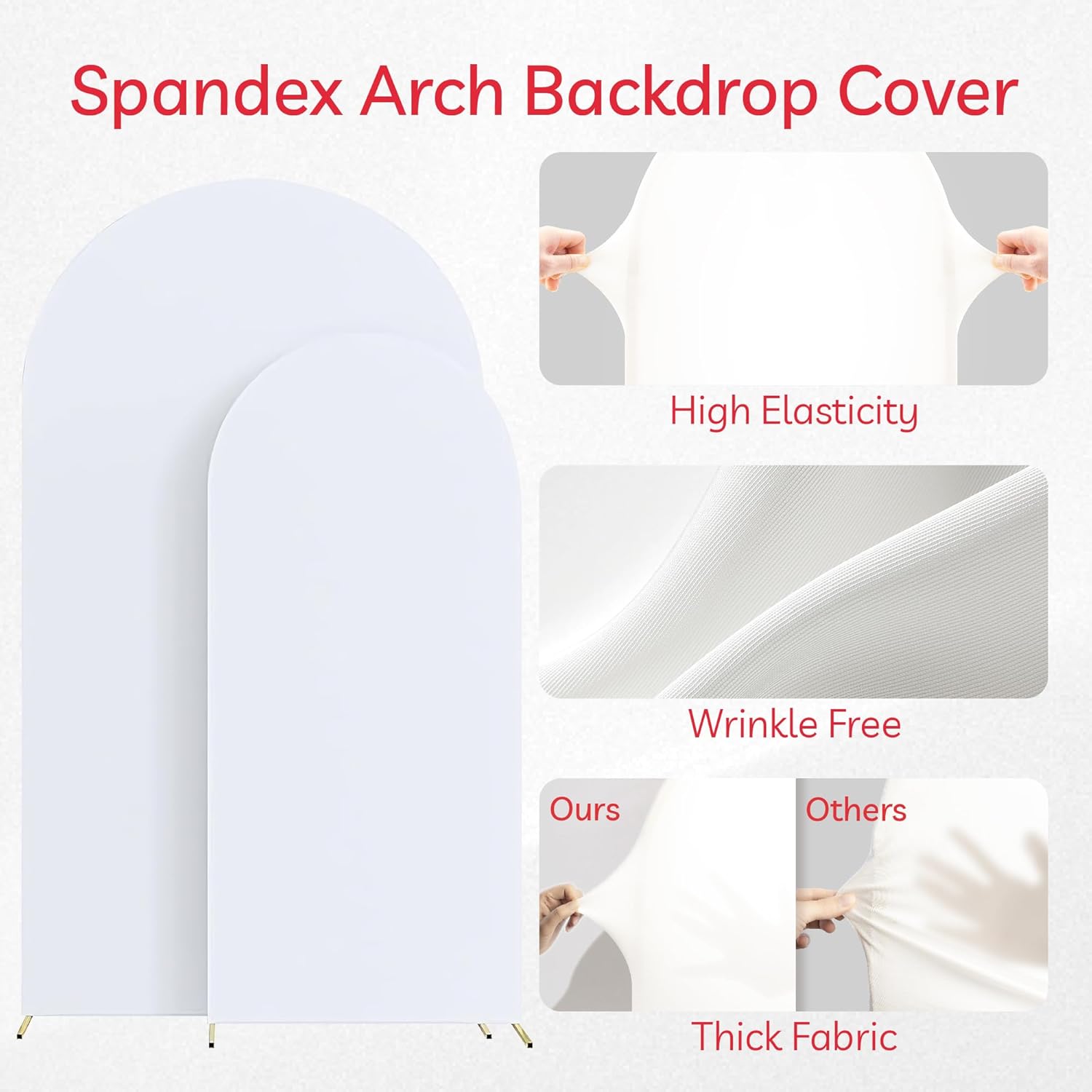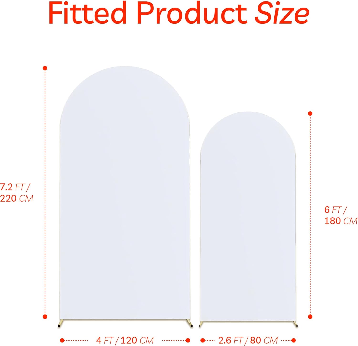 Set of 2 Arch Backdrop Cover, High Elastic Wrinkle-Resistant Arch Cover, Spandex Fabric Thick Opaque Round Top Chiara Backdrop for Wedding Birthday Baby Shower Garden Decor 6FT, 7.2FT, White