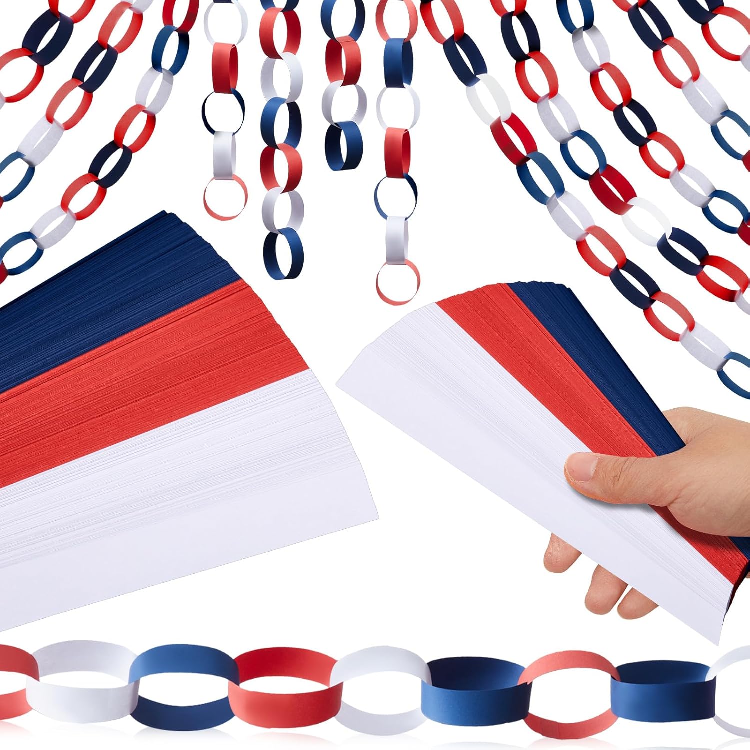 Lincia 600 Sheet Halloween Paper Chain Garland, Construction DIY Crafts Chain Strip for Fall Thanksgiving Party Decor, 1x8 Inch with Double Sided Tape (Independence Day)