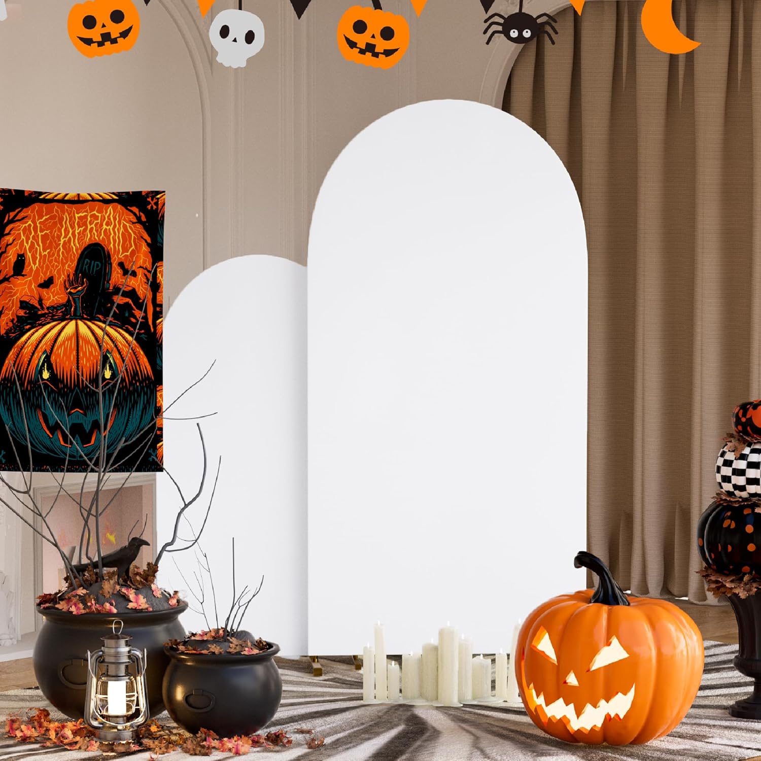 Set of 2 Arch Backdrop Cover White High Elastic Wrinkle-Resistant Arch Cover Spandex Fabric Thick Opaque Round Top Chiara Backdrop for Weddings Birthday Baby Shower Garden 6.6FT, 8FT