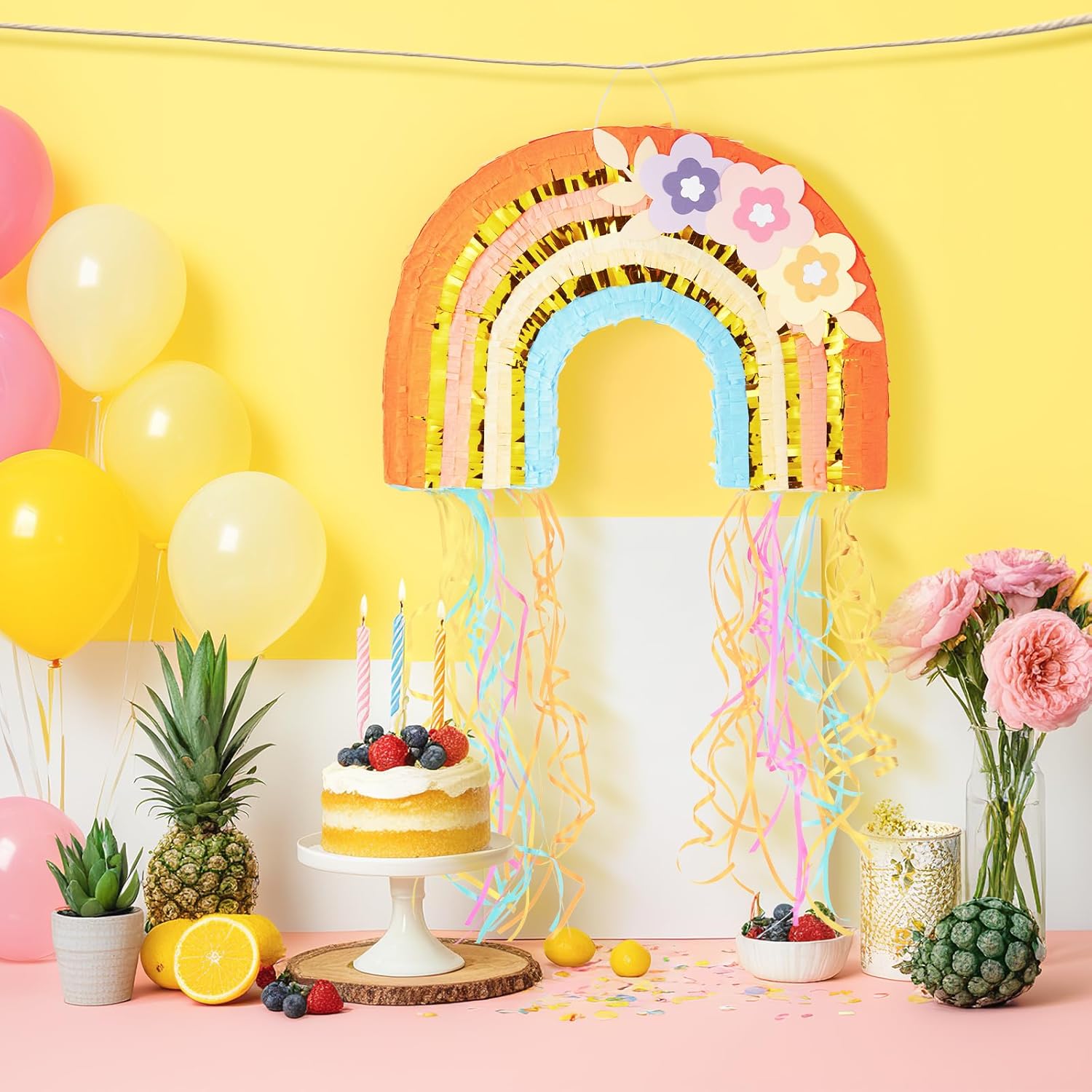 - 【VERSATILE DECORATION】 - Perfect for children's parties and festive gatherings, our colorful rainbow piñata is a versatile party decoration that promises hours of fun. Also you can use it as home decor or photo prop to make it a addition that will instantly elevate the atmosphere.