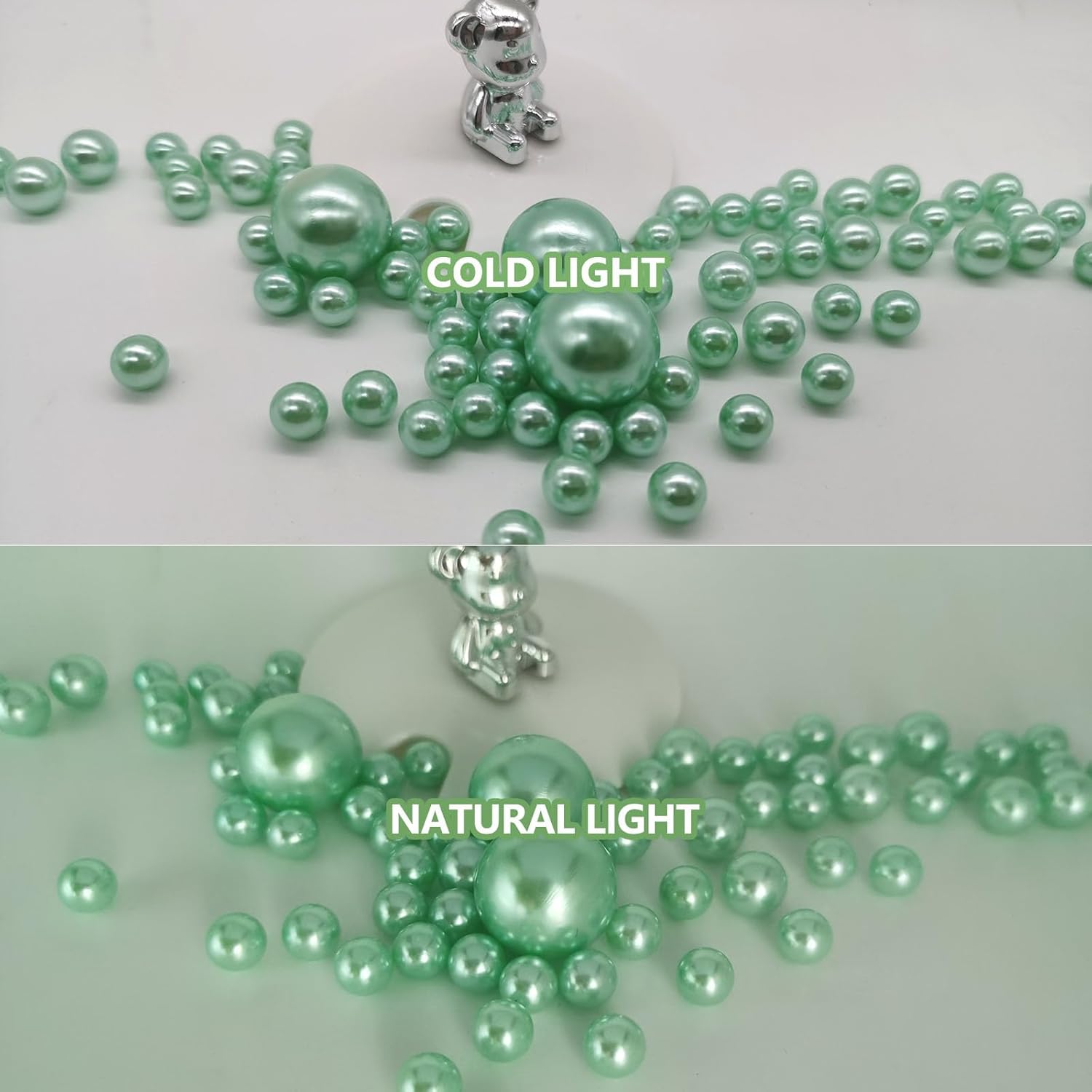100PCS Faux Pearls Beads for Centerpiece Vases, Green Vase Filler Faux Pearls, No Holes Filler Beads for Mardi Gras St. Patrick's Day Party Wedding Table Decor, 14/20/30mm