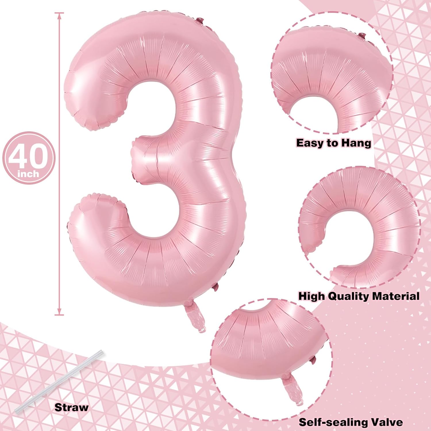 - π Pastel Pink Number 13 Balloon: Our package included 40 inch number 1 & 3 balloon and 1pcs straw. Simply inflate the balloon using the straw, and you're ready to party! Light pink number foil balloons are the best for girls birthday party decoration.