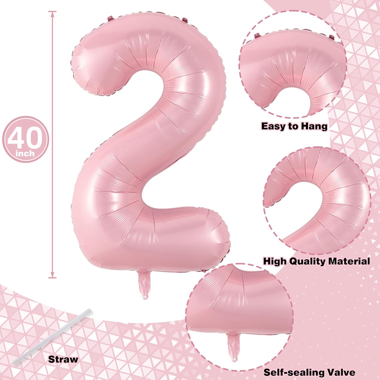- π Pastel Pink Number 20 Balloon: Our package included 40 inch number 2 & 0 balloon and 1pcs straw. Simply inflate the balloon using the straw, and you're ready to party! Light pink number foil balloons are the best for women birthday party decoration.