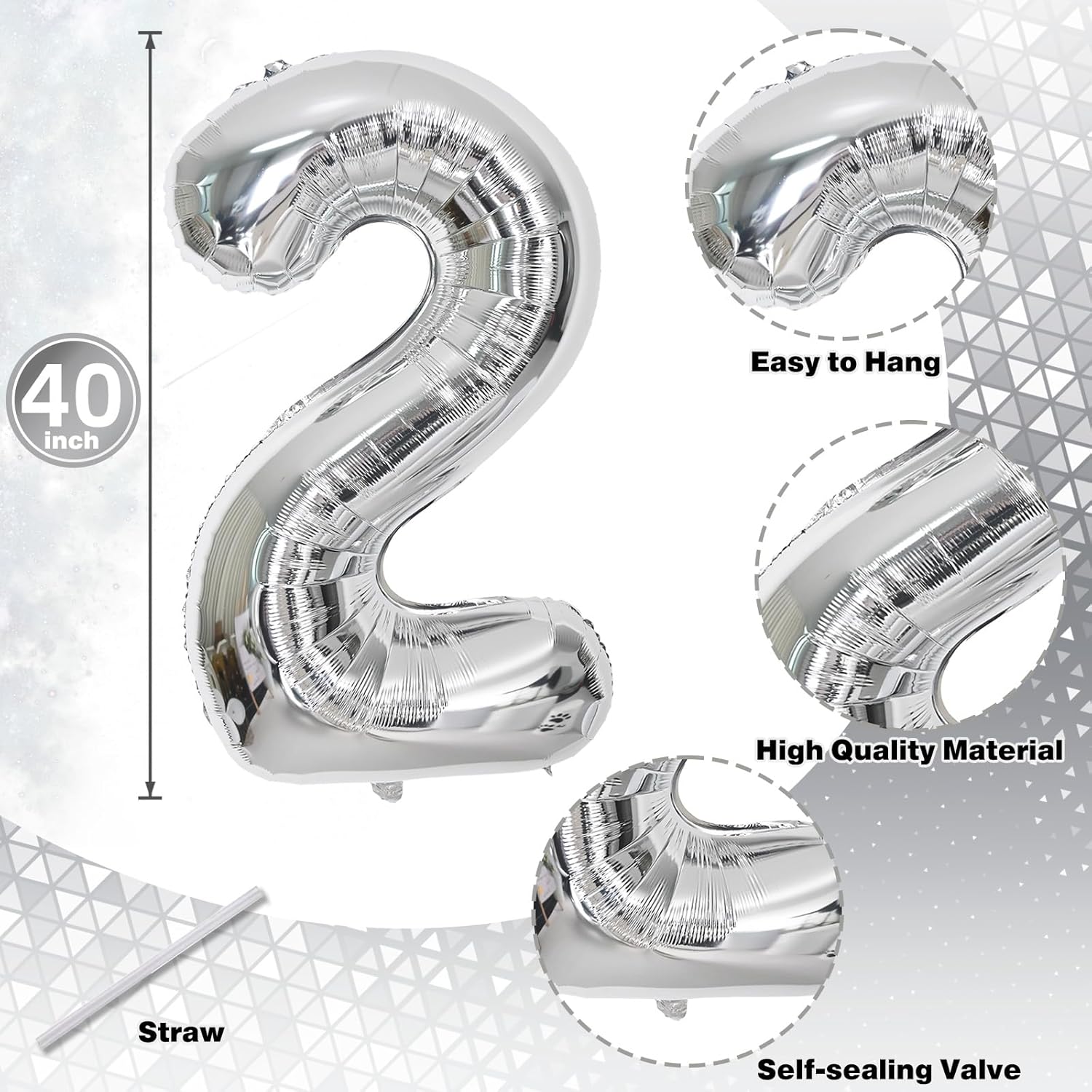 - π Silver Number 12 Balloon: Our package included 40 inch number 1 & 2 balloon and 1pcs straw. Simply inflate the balloon using the straw, and you're ready to party! Silver number foil balloons are the best for girls or boys birthday party decoration.