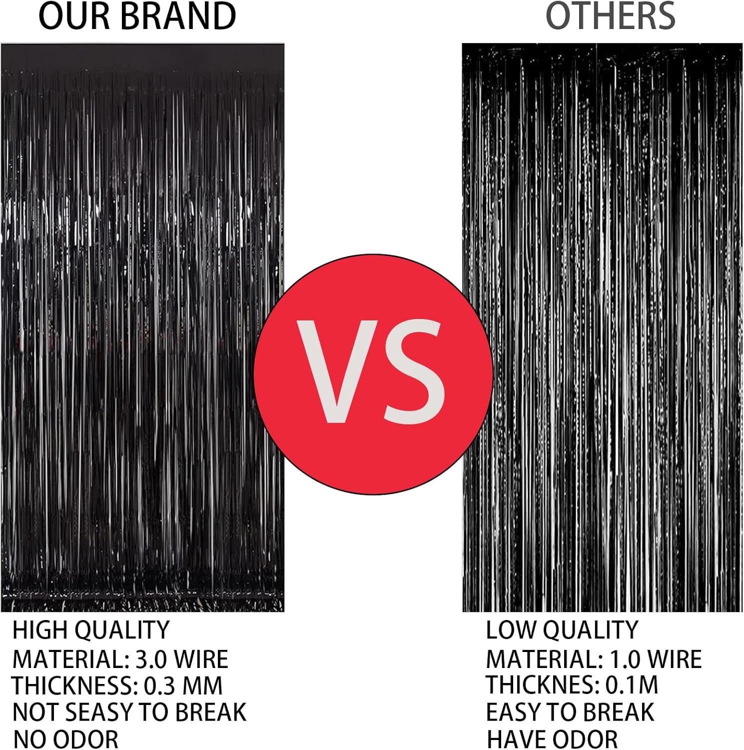 - 4 Pack foil fringe tinsel backdrops: each measuring a whopping 3.3 ft x 8.3 ft.Long enough for indoor or outdoor parties. Also can be cut in suitable length for your birthdays Party decorations These backdrops are perfect for creating stunning party decorations, event backdrops, and photo booths that will leave your guests in awe.