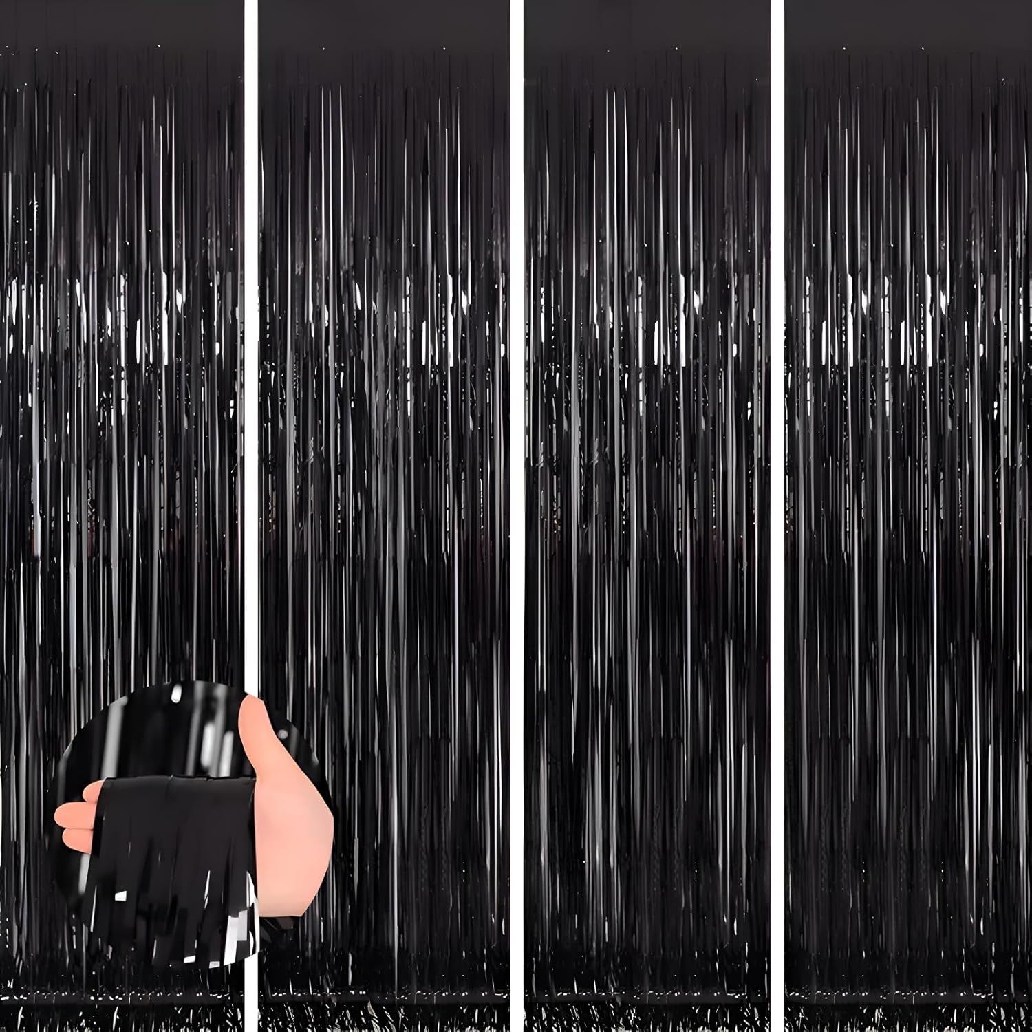 Keyali 4 Pack 3.3 * 8.3 ft Foil Curtain Metallic Tinsel Fringe Curtains Photo Booth Props Backdrop for Birthday Wedding Engagement Baby Shower Christmas Holiday Celebration Partyl,Black