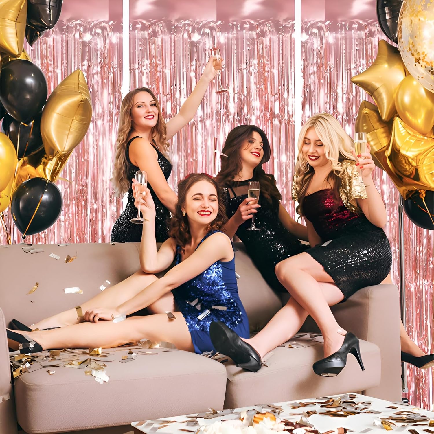 Keyali 3 Pack 3.3 * 8.3 ft Foil Curtain Metallic Tinsel Fringe Curtains Photo Booth Props Backdrop for Birthday Wedding Engagement Baby Shower Christmas Holiday Celebration Partyl,Rose Gold