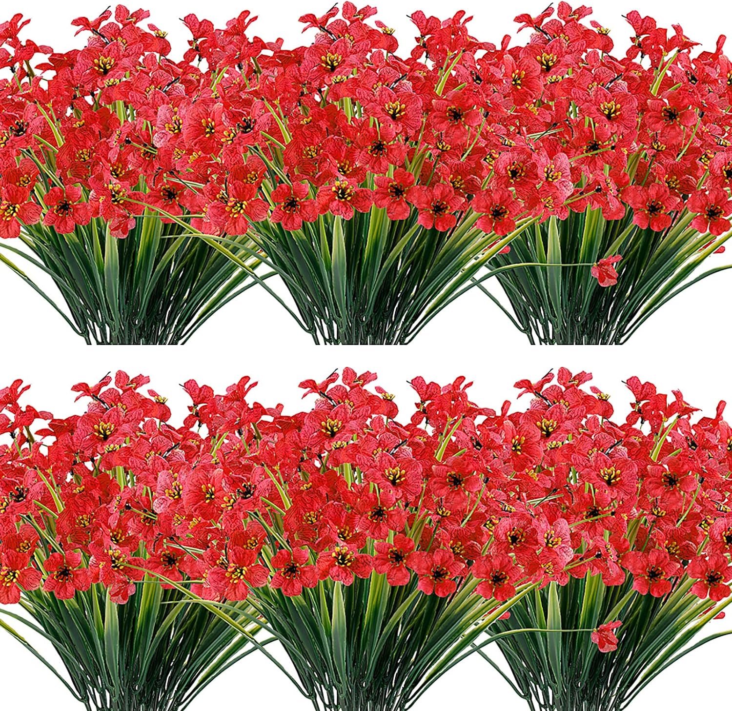 20 Bundles Artificial Flowers Outdoor UV Resistant Fake Flowers No Fade Faux Plastic Plants Garden Porch Window Box Decorating (Deep Red)…