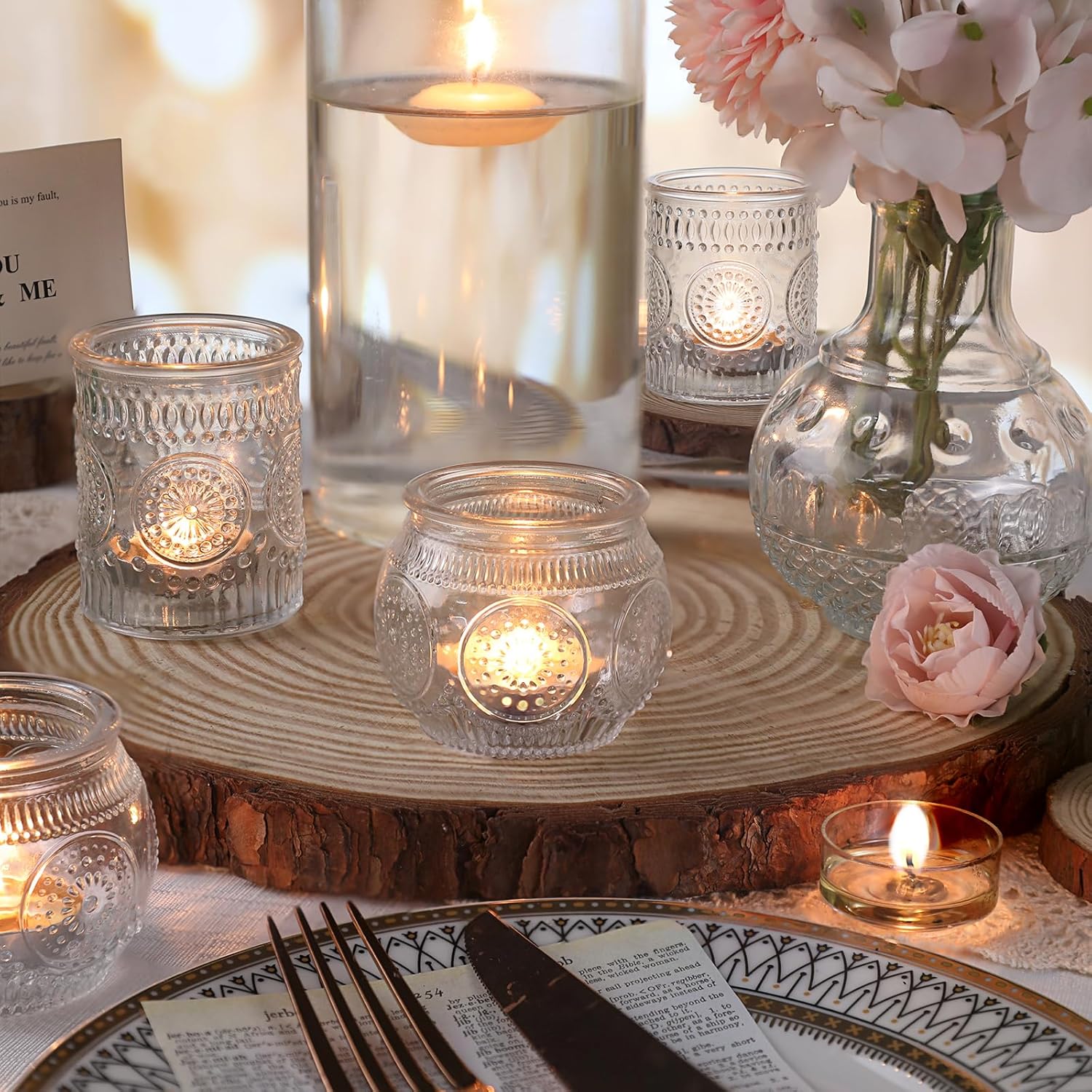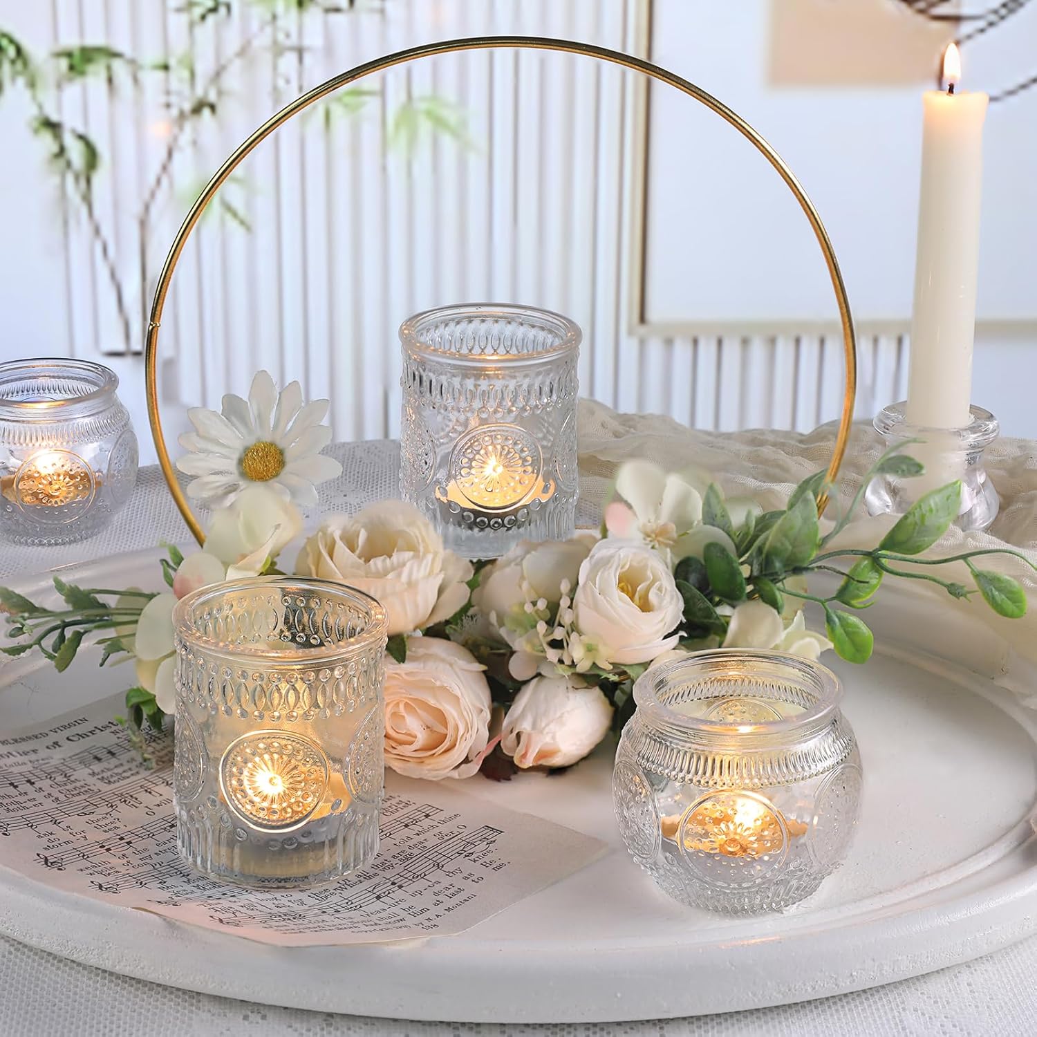- ❤️❤️[ Vintage Sunflower Embossed Style ]❤️❤️: This is the spark collision of retro and simple fashion. The combination of embossing technology and glass makes the votives more nostalgic and textured. At the same time, we chose the sunflower element, which is very cute and exquisite on the basis of vintage. Maybe you want a special and unforgettable party, DARJEN's nice design and well-made tea lights candle holder will be a necessity for your party centerpieces.
