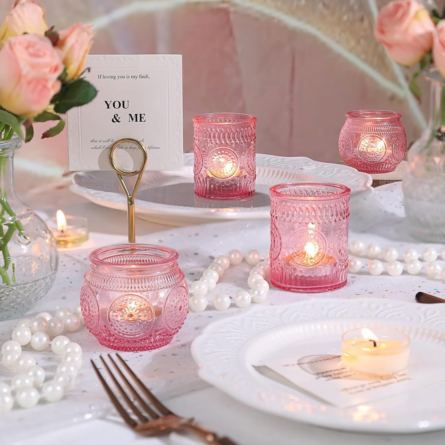 - ❤️❤️[ Votive Candle Holders Set ]❤️❤️: You will get 12 pack pink votive candle holders in your package, including 6 glass votives and 6 bowl glass votives.The dimensions are 2.1ʺD x 2.56ʺH and 2.1ʺD x 2.1ʺH approximately. These glass votive candle holders are the perfect complement to any dining table, which can be used with regular votive candles, tea light candles, flameless LED tea waxes, and edible butter candles, creating a warm and inviting ambiance that enhances the dining experience.