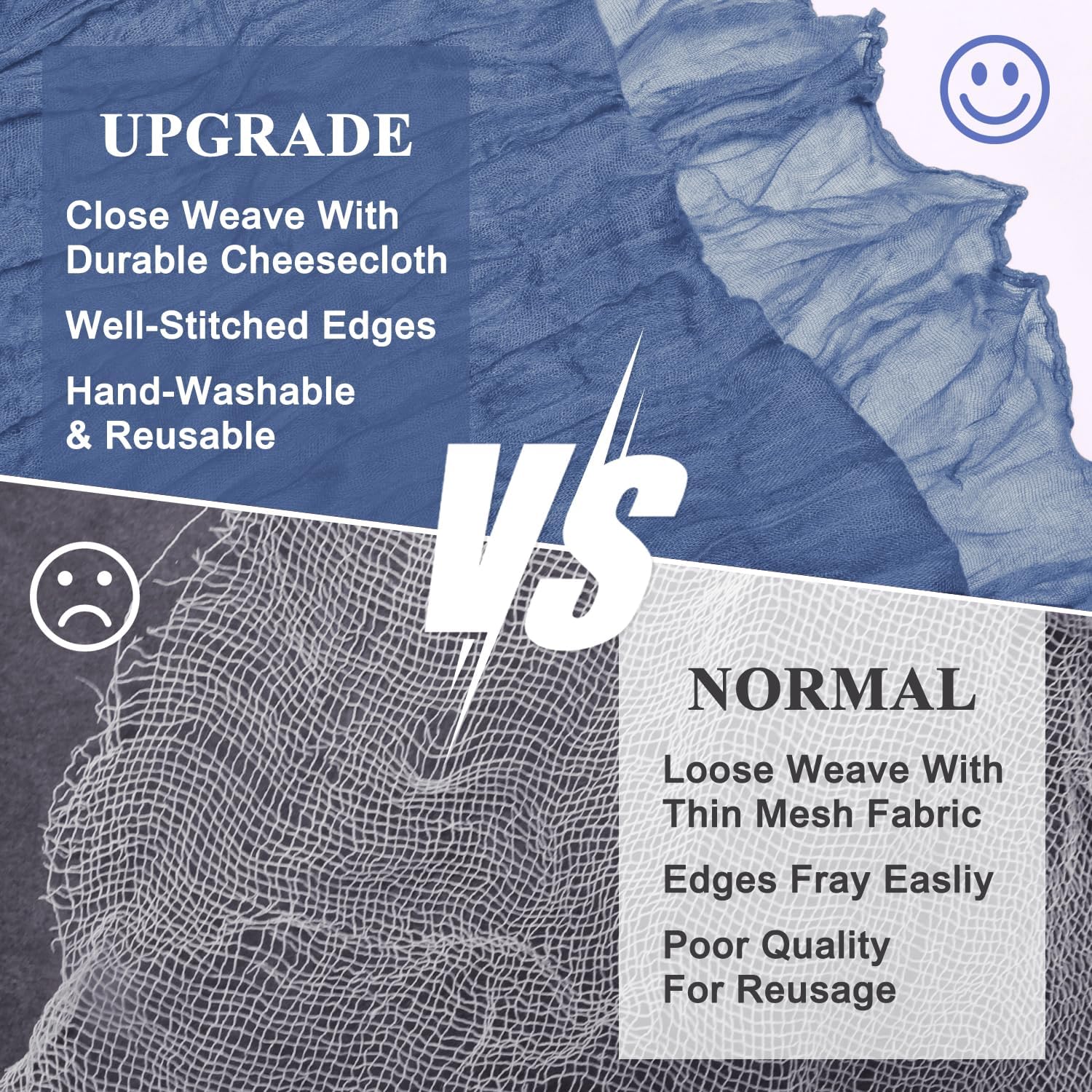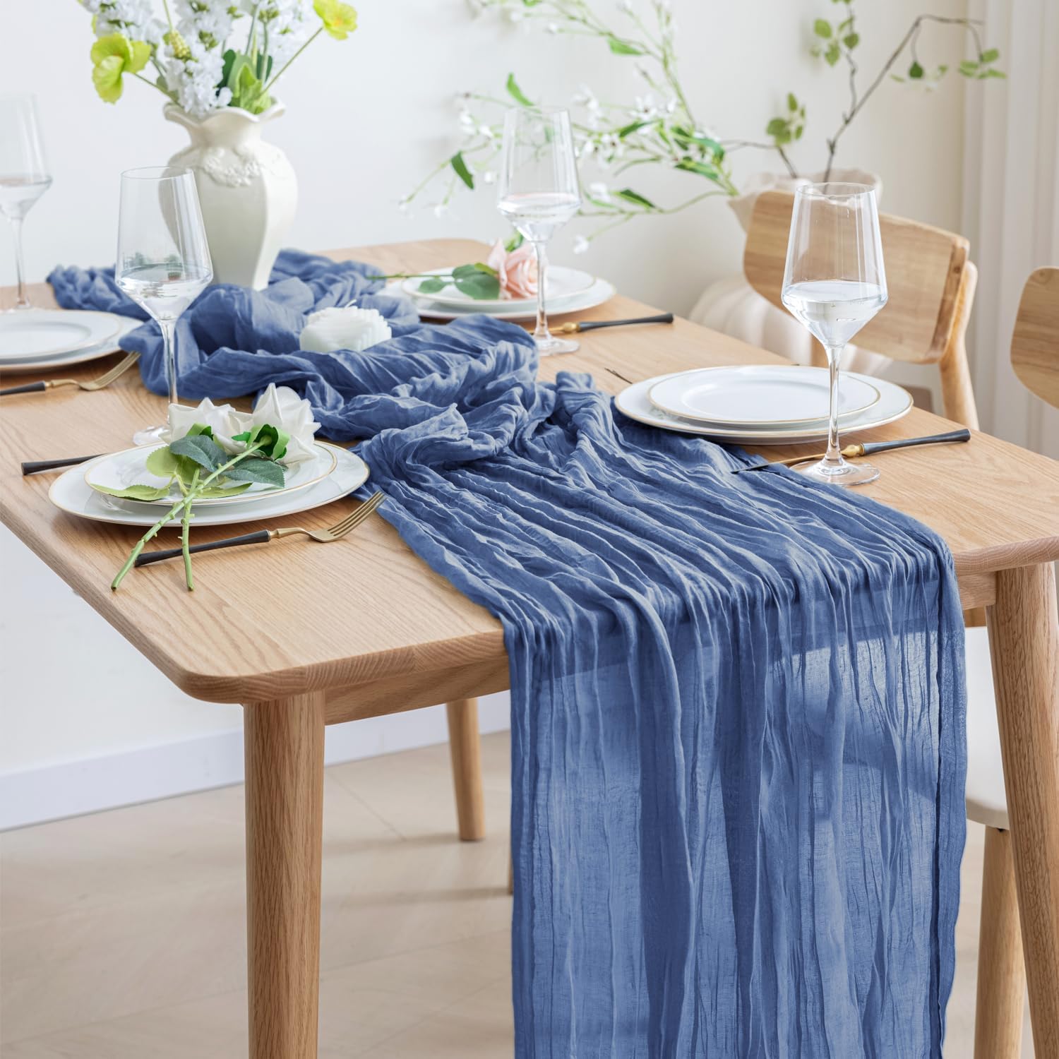 Asee'm 2pcs Cheesecloth Table Runner 120 Inches Long Blue Boho Gauze Cheese Cloth Runner 10FT Rustic Sheer Table Runners for Christmas Wedding Party Baby Shower Spring Easter Decoration
