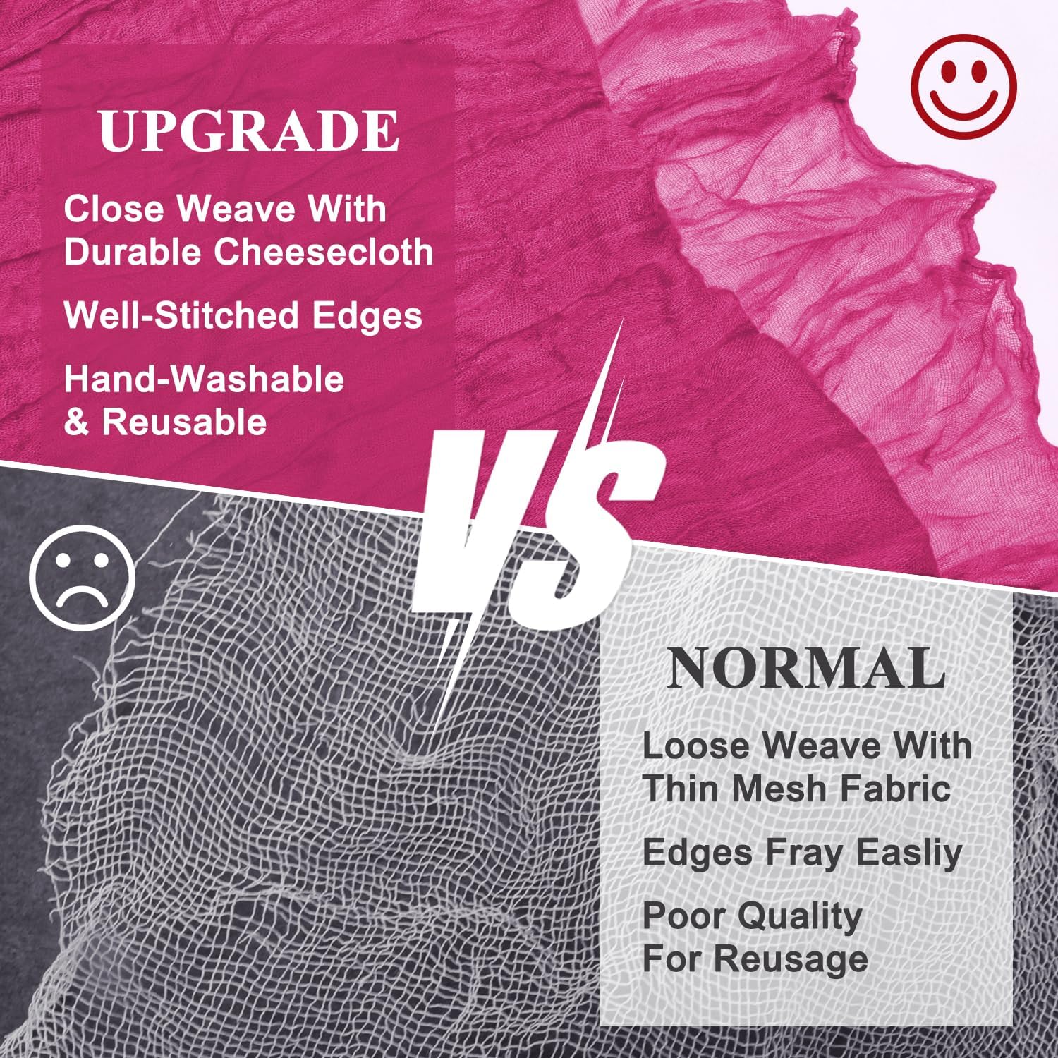 Asee'm 6pcs Cheesecloth Table Runner 120 Inches Long Fuchsia Boho Gauze Cheese Cloth Runner 10FT Rustic Sheer Table Runners for Christmas Wedding Party Baby Shower Spring Easter Decoration