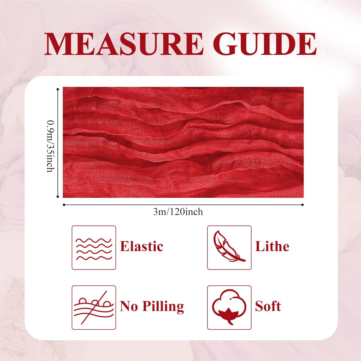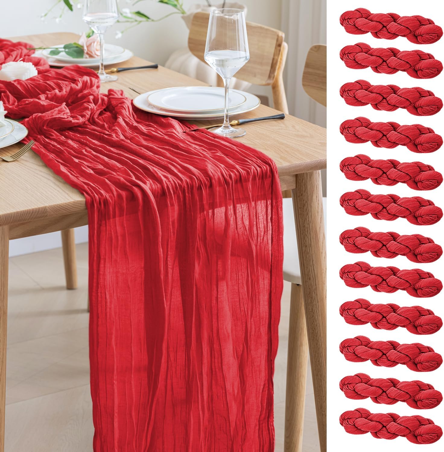 Asee'm 12PCS Fall Table Runner Cheesecloth 10FT Red Boho Gauze Fabric Rustic Sheer Cheese Cloth Runners for Thanksgiving Christmas Wedding Bridal Shower Party