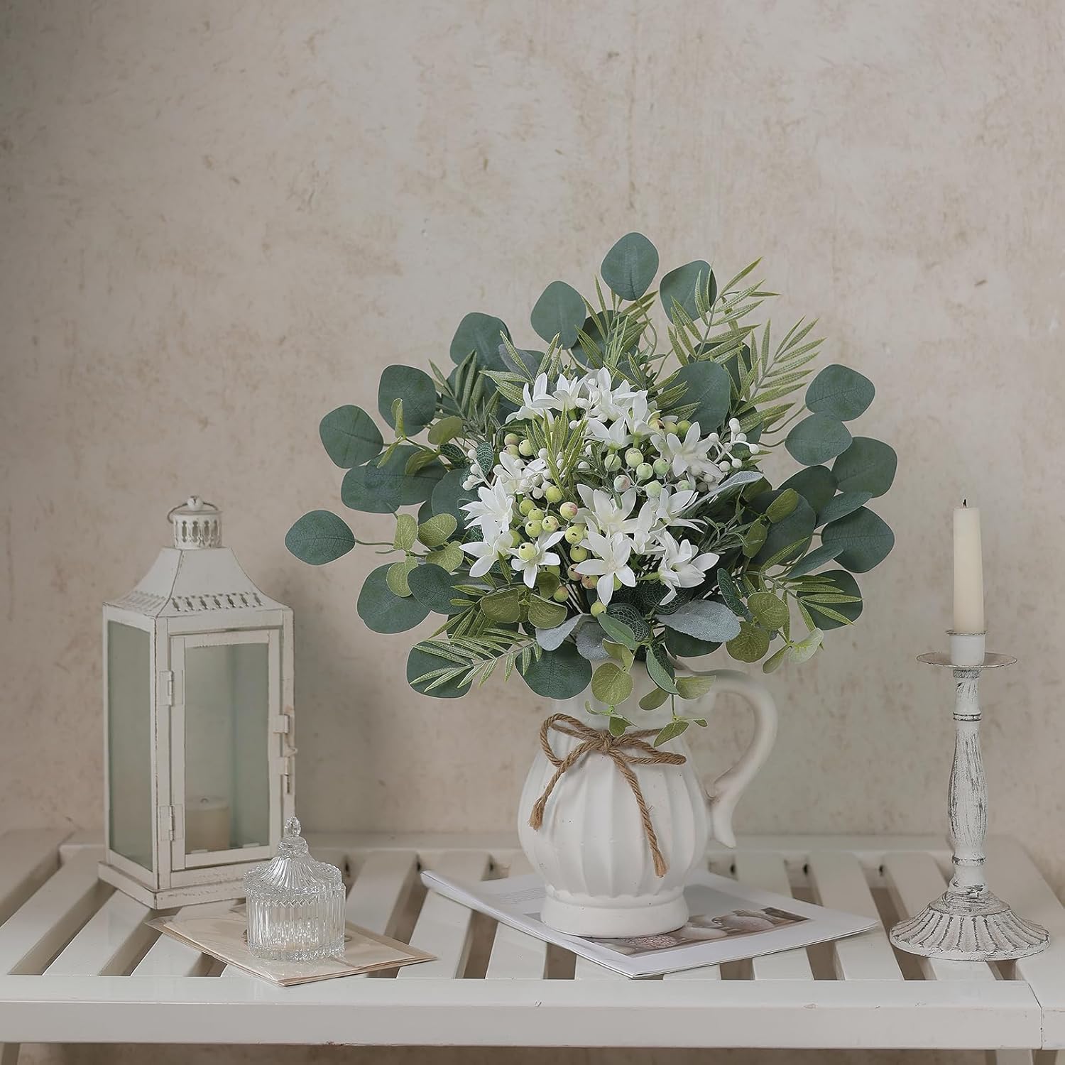 - 【Quality materials】: The leaves and flowers are made of quality silk and plastic, and the stems are made of wire, so you can bend or cut them as needed. These eucalyptus leaf stems and artificial flowers are made of quality materials that are durable enough that you don't have to worry about wilting or fading or spend time watering and caring for them.