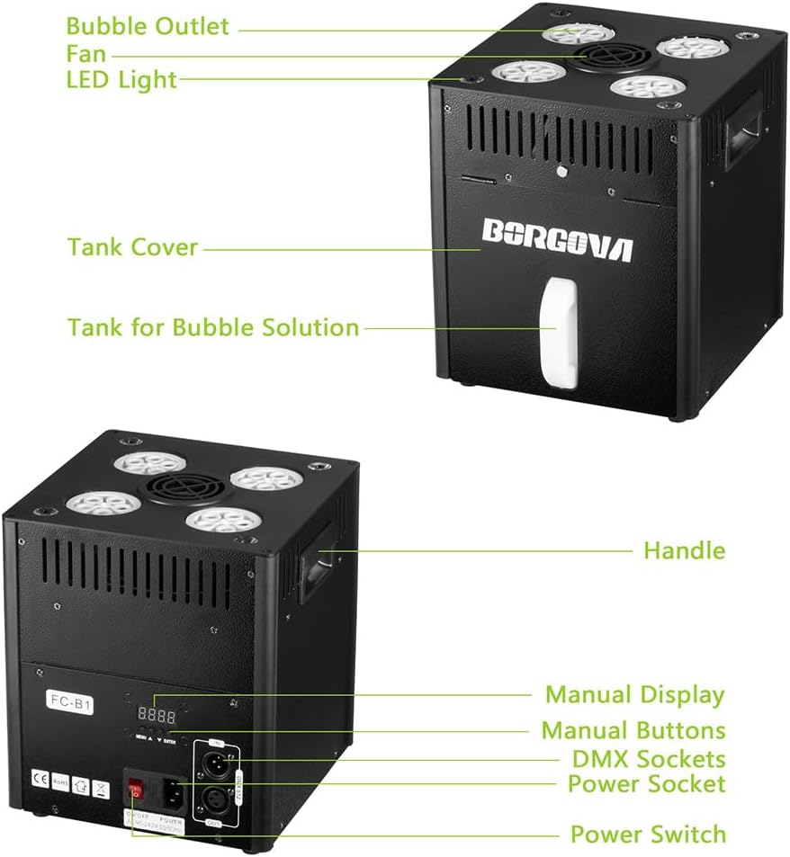 - 【Commercial Bubble Machine】This bubble machine comes with DMX 512 and wireless remote control, making it easy to operate and perfect for commercial performances