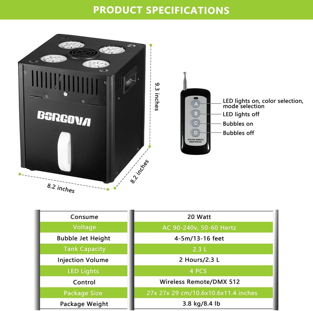 Stage Bubble Machine with Lights, DMX Control, Wireless Remote - Perfect for Weddings, Commercial Performances, Kids’ Parties, and Carnivals