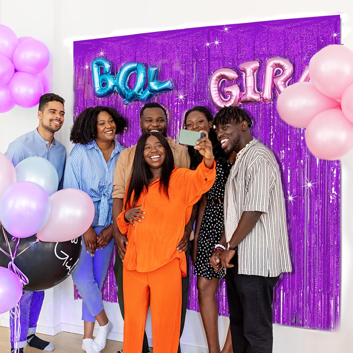 Tinsel Curtain Backdrop Purple Birthday Decorations 5 Packs Glitter Foil Fringe Streamers Photo Booth for Christmas Wedding Halloween Graduation Party Decor