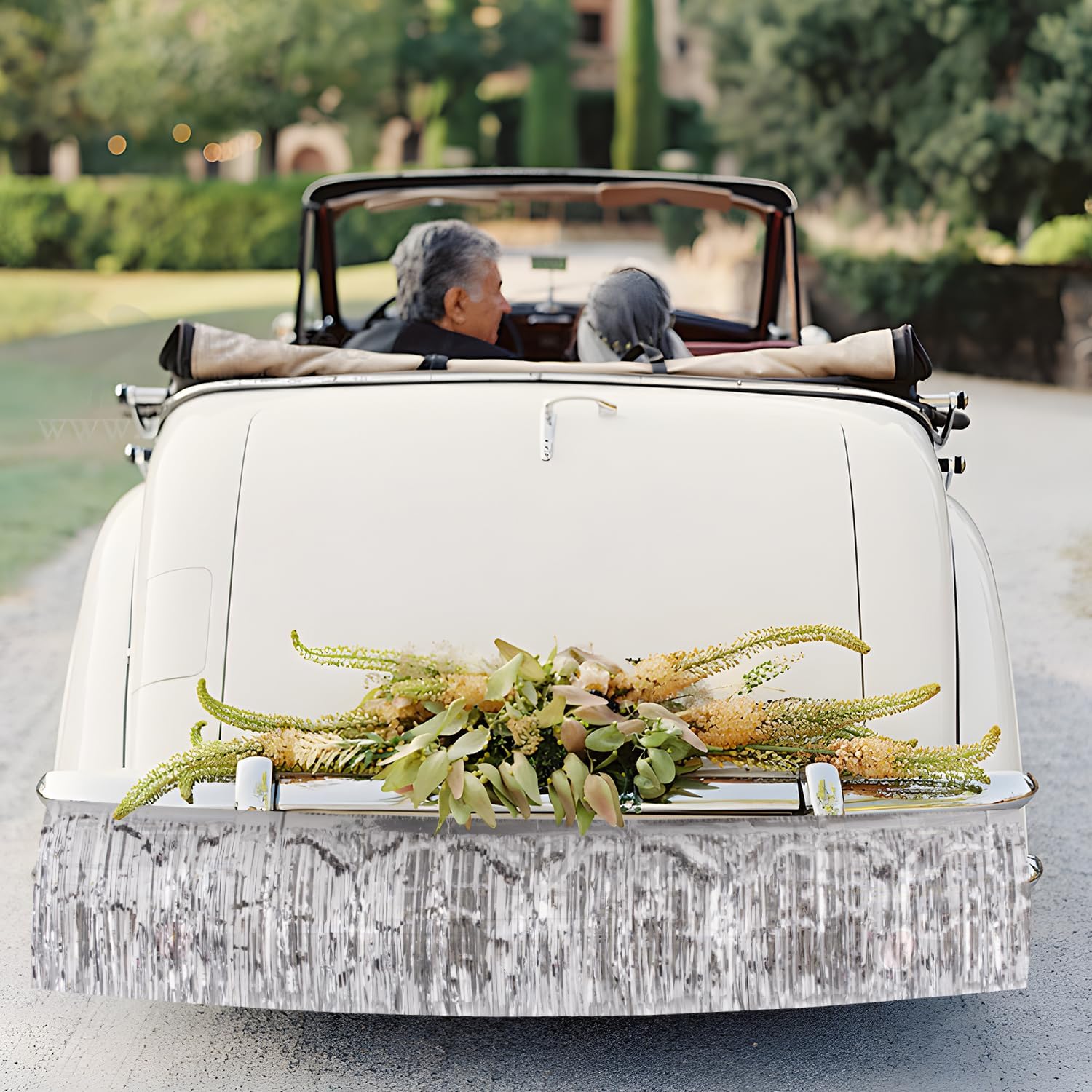- You'll get: Metallic streamers party decorations includes 4 metallic silver tinsel fringe garland and 40 capsules Glue Dots. Each silver streamers are 12ft, providing ample length for iridescent party decorations. Ideal for parade float decorations for trailer.