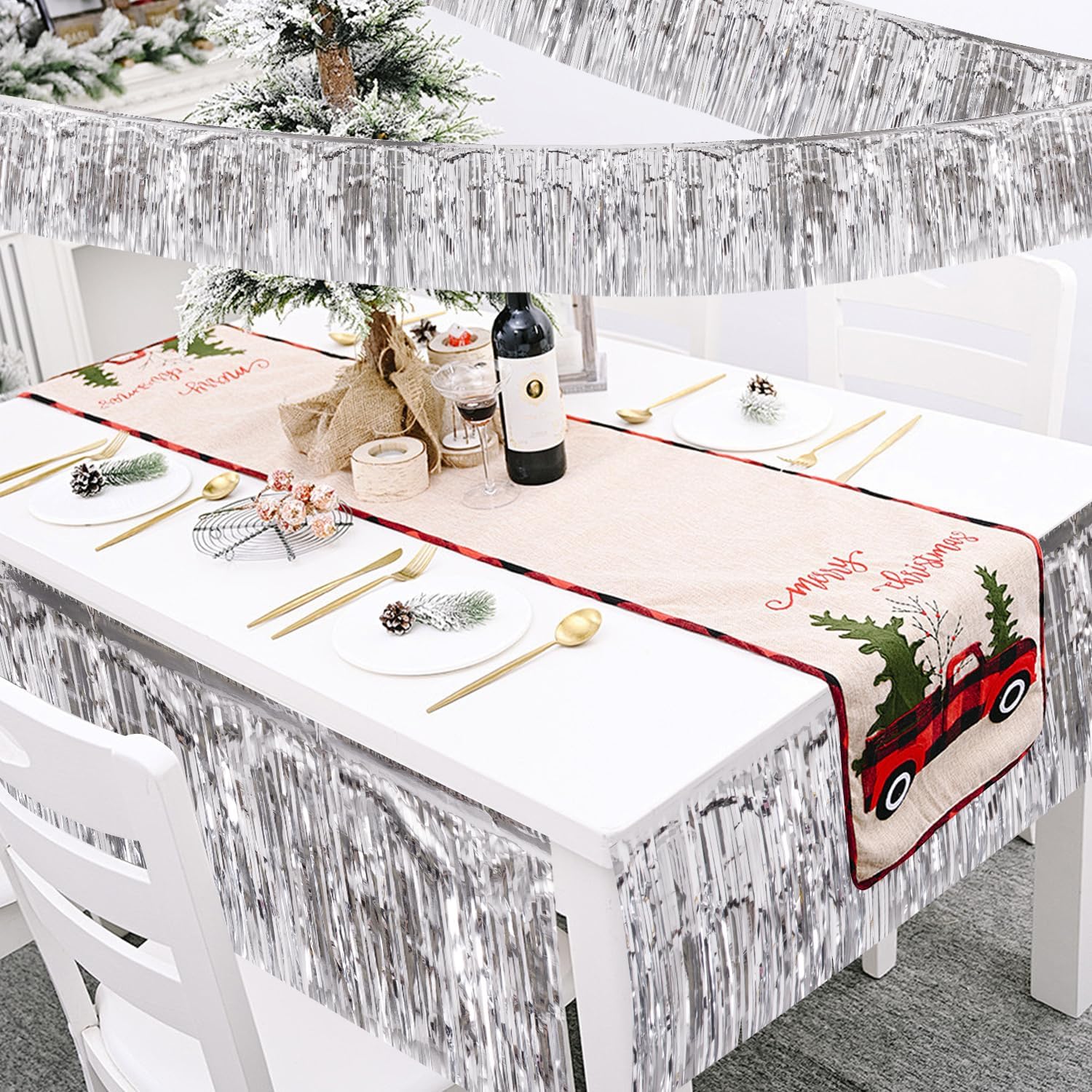 - Table Skirt:Dress up your party tables with these elegant silver decorations for party