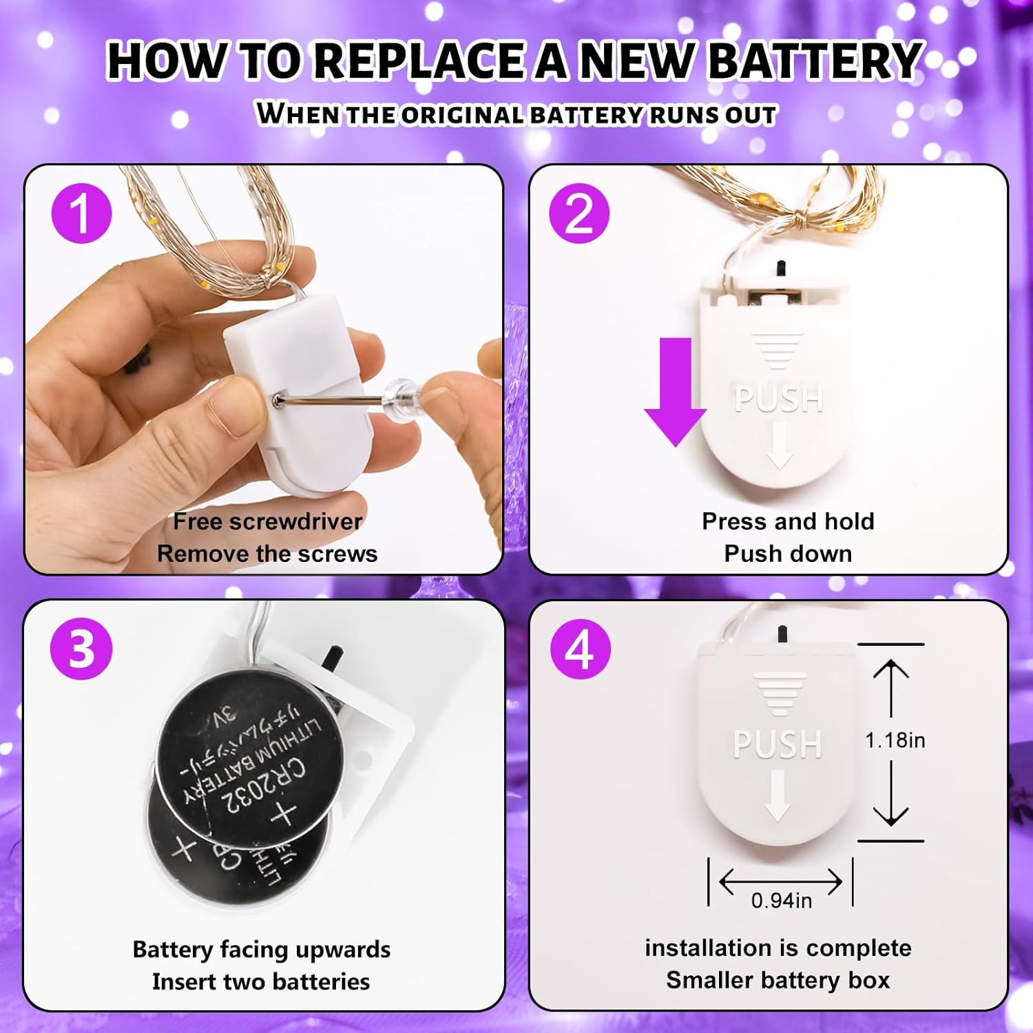 - 【Battery Powered】: Each set of lights powered by 2X CR2032 batteries( included and can be replaced). Although these support more than 72 hours continuous working, the actual use time will vary with the temperature and humidity of the environment.