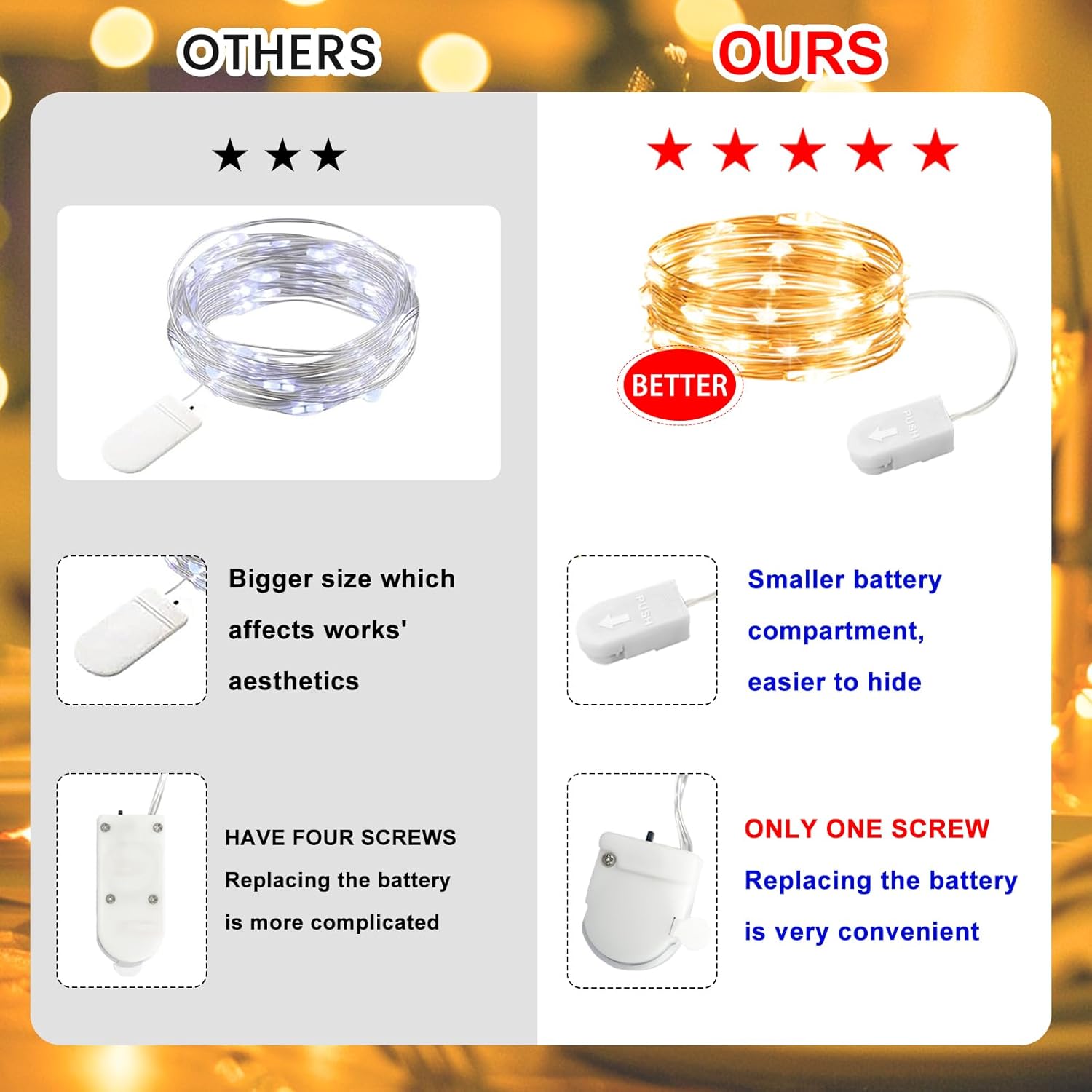 - 【Easily Concealed】: Our mini battery box with on/off button, half the size of others (1.1*0.9 IN), seamlessly integrates into any decor, enhancing aesthetics and allowing versatile lighting arrangements, perfect for themed parties, sleepovers, or centerpieces, with an included screwdriver for easy operation.