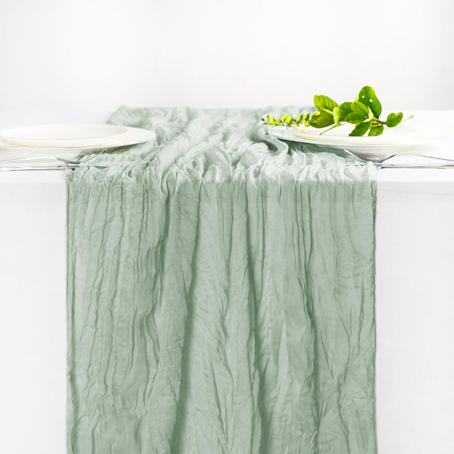Hahuho Sage Green Cheesecloth Table Runner 10ft, Gauze Boho Rustic Table Runners for Wedding Birthday Party Baby Shower Decorations(1 Pack , 35x120 Inches)