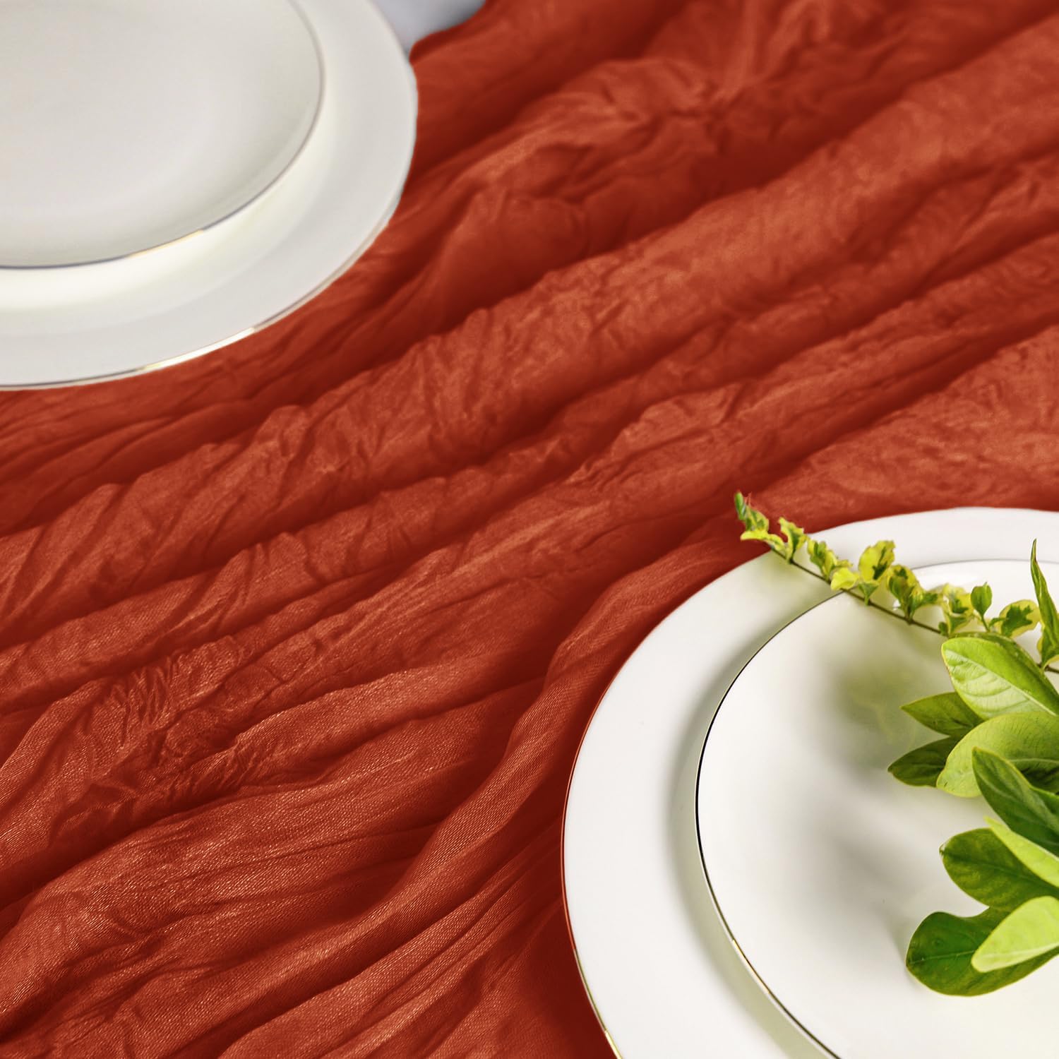 Hahuho Terracotta Cheesecloth Table Runner 10ft, Gauze Boho Rustic Table Runners for Wedding Birthday Party Baby Shower Decorations(6 Pack , 35x120 Inches)
