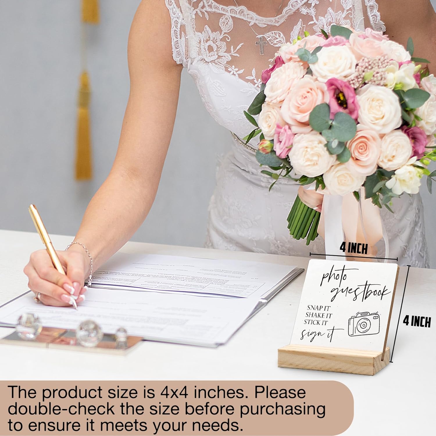Wedding Guest Book Desk Decor 4x4 Inch, Photo Guest Book Sign Wood Plaque, WeddingGuestBook Sign, Wedding GuestBook Sign Wooden Plaque with Wood Stand for WeddingReception Table Decor