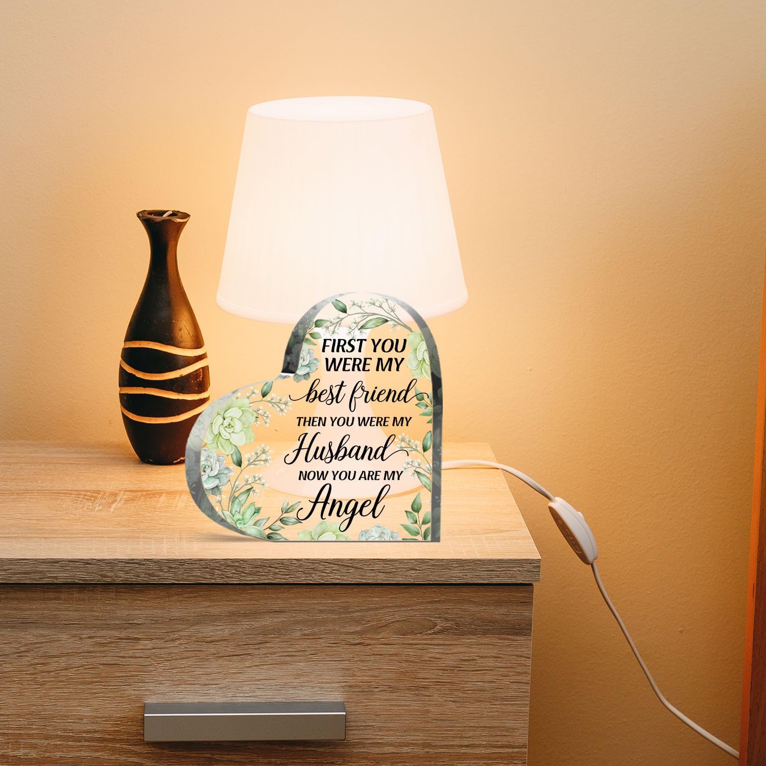 QUPT In Memory of Husband Acrylic Heart Plaque, Bereavement Condolences Grief Plaque, Funeral Remembrance Decor Ornament Sign
