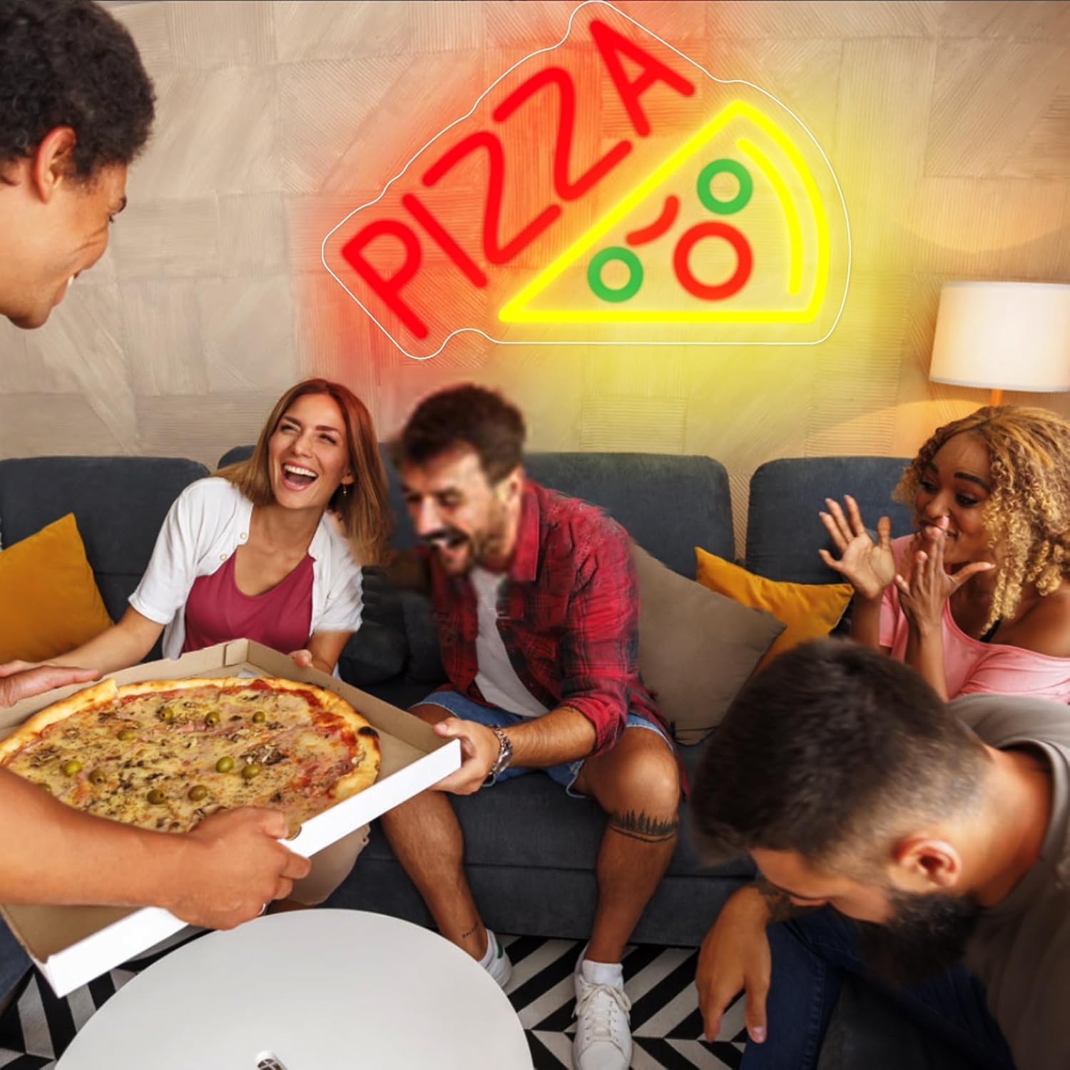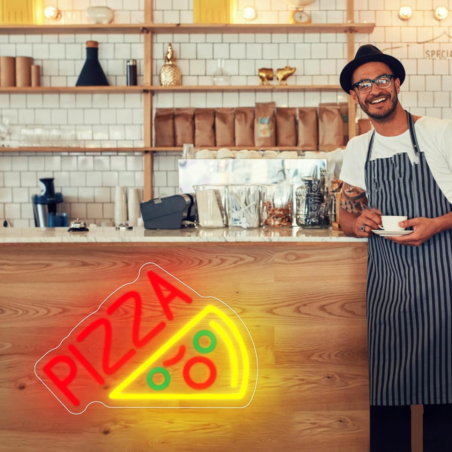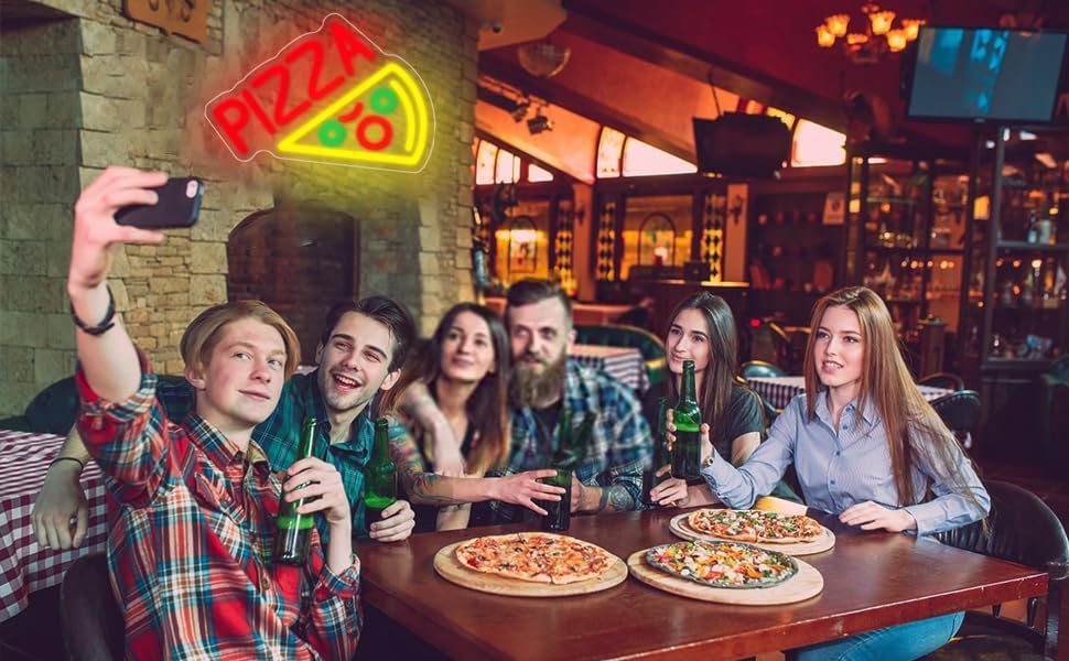 - Pizzeria Decorate - Pizza neon sign is designed with pizza shape. it is very suitable for restaurants or food lovers, and can be decorated on the bedroom wall or hanging on the restaurant wall. it will be very attractive.