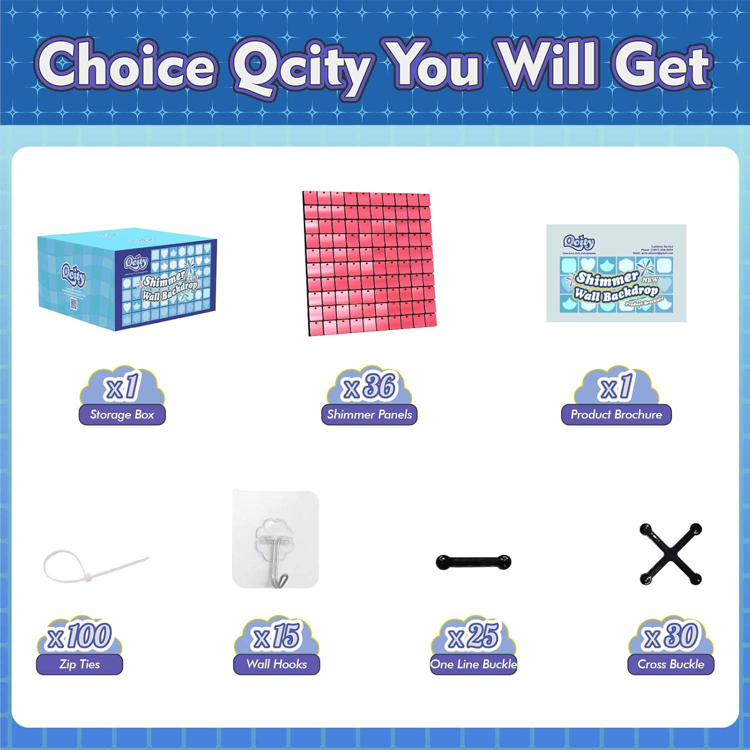 - Complete Kit: Each package includes 36 sequin wall panels (12"x12" each), along with 100 zip ties, 15 wall hooks, 25 single-line buckles, 30 cross buckles, and an installation manual. (Backdrop stand not included.)