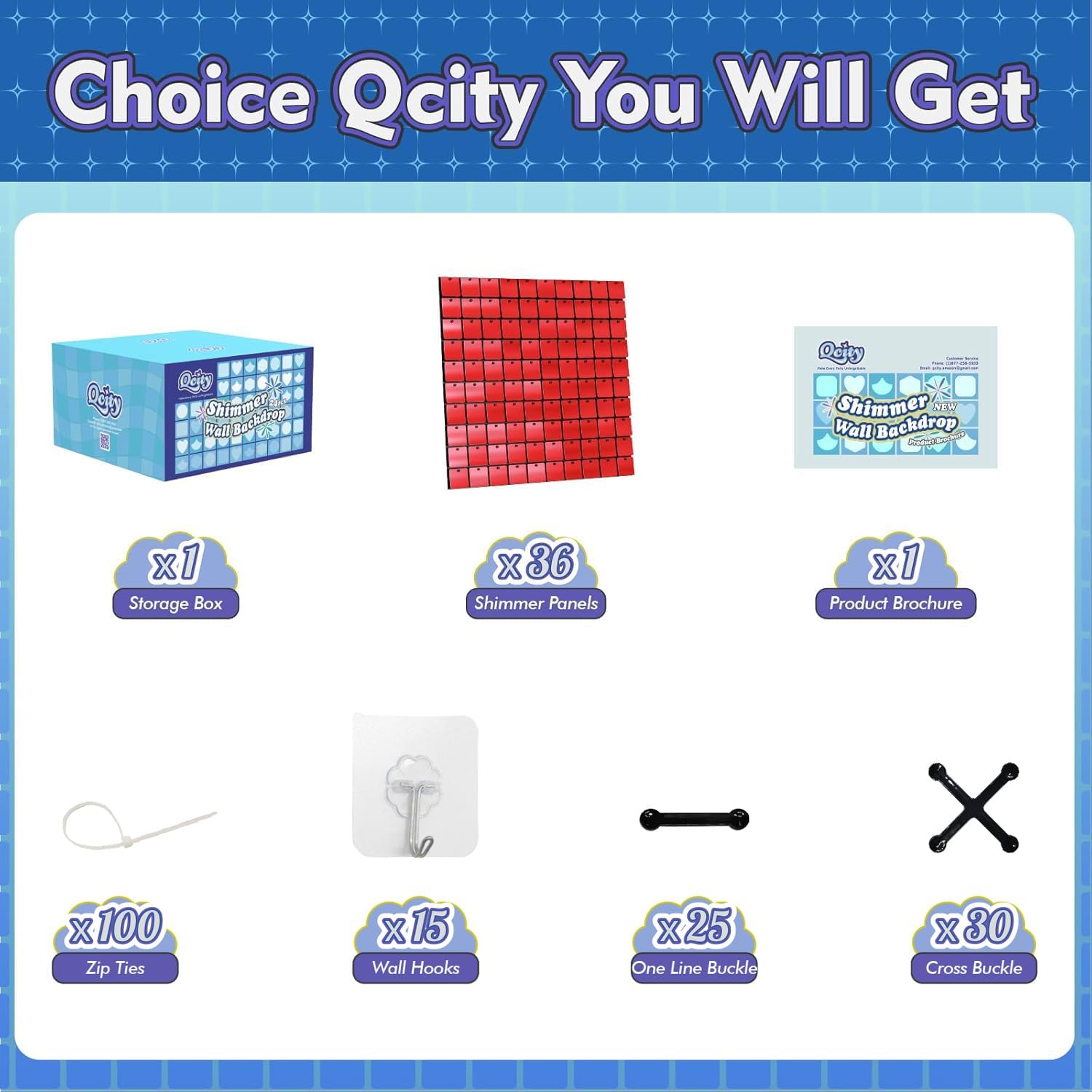 Qcity Red Shimmer Wall Backdrop 36PCS, Black Back Not See-Through Design, Square Sequin Glitter Backdrop Panel, Perfect for Outdoor Events, Birthdays, Wedding and Party Decoration