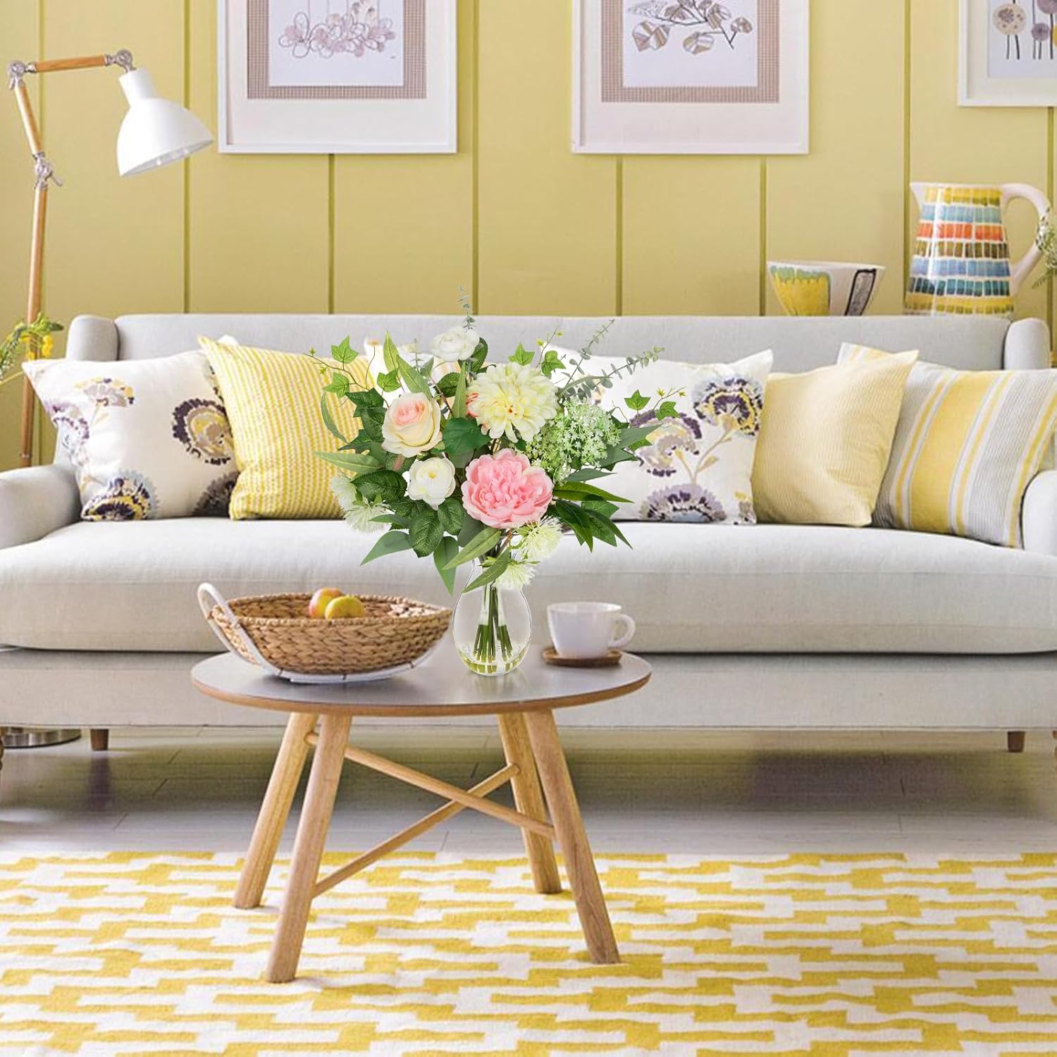 - ELEGANT MIXED FLORAL DESIGN: This artificial floral arrangement features a stunning mix of peonies, roses, dahlias, ranunculus, and eucalyptus leaves—perfect for adding a romantic, natural touch to any room.