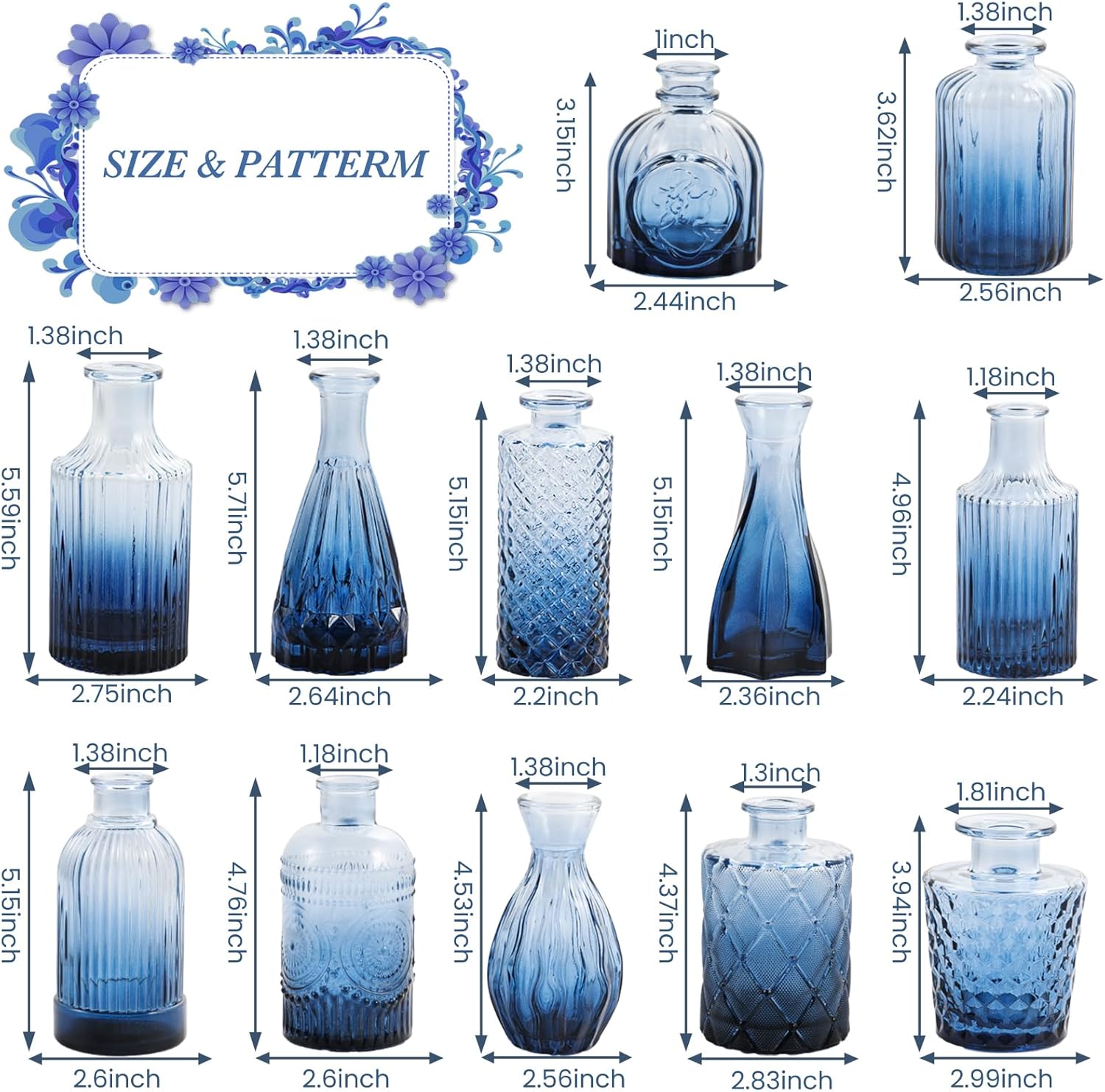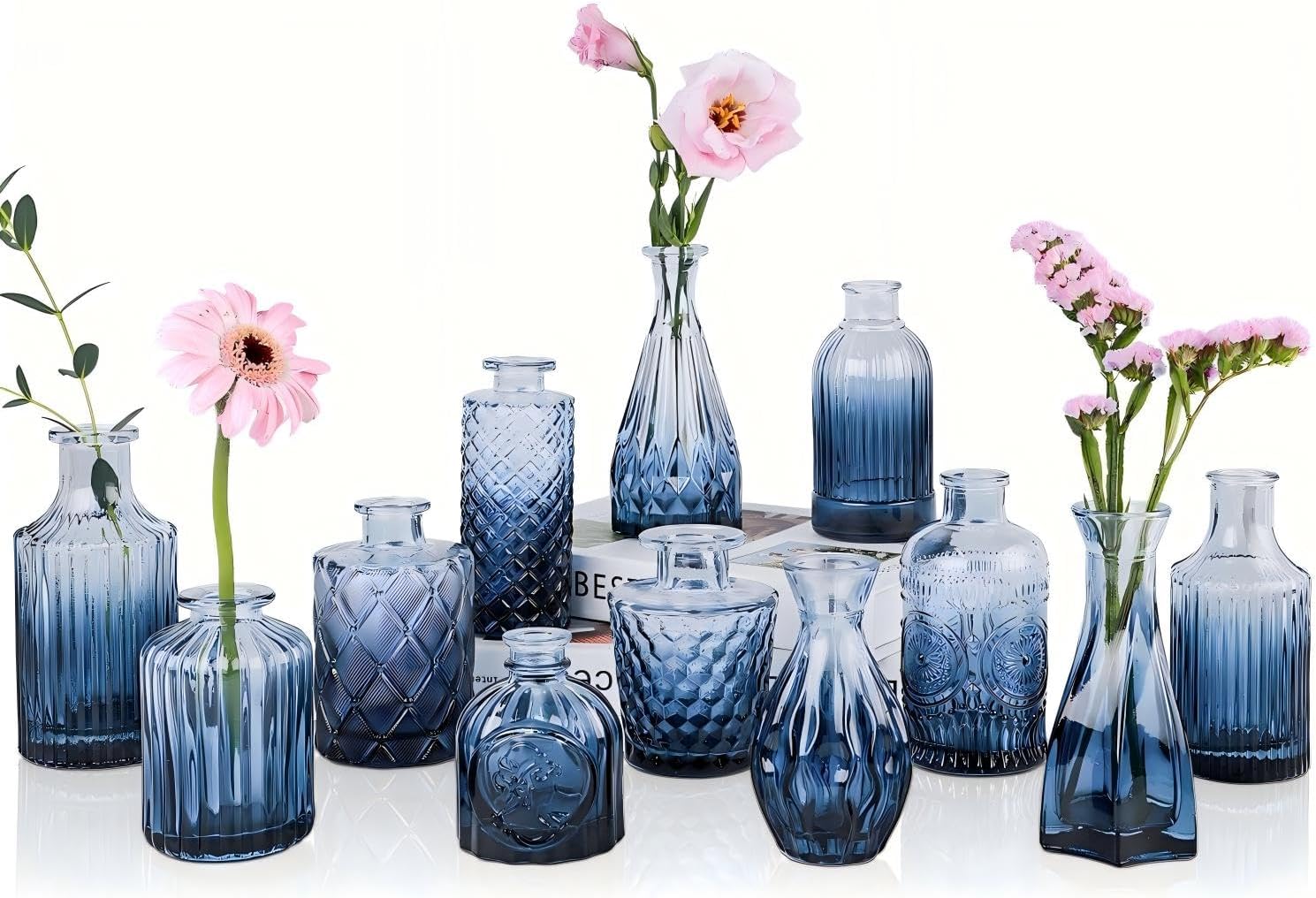 - Vintage Design: UPBUD bud pattern vases evoke a nostalgic charm, adding a vintage touch to your living space and enhancing the aesthetic appeal of your home. This collection features 12 glass vases of varying sizes and shapes, effortlessly elevating your table setup to create a truly distinctive ambiance.