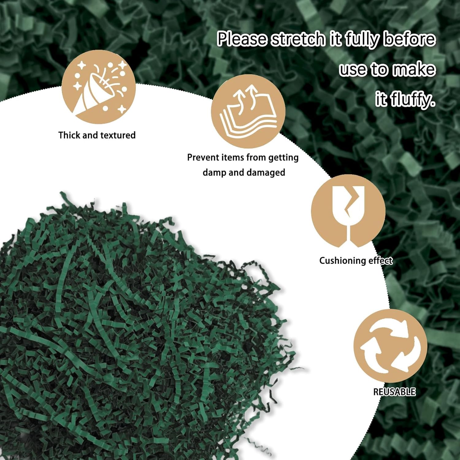 - 【Crinkle Cut Paper Shred】Display your products with fun and colorful dark green Crinkle Cut Paper to create a memorable gift-giving experience with your tasteful choice of gift-wrapping fillers. Ensuring your gifts are beautifully presented. With 1 LB of crinkle cut paper shred filler, you'll have plenty to fill those extra spaces in your packages, is suitably provides maximum protection for your gifts.