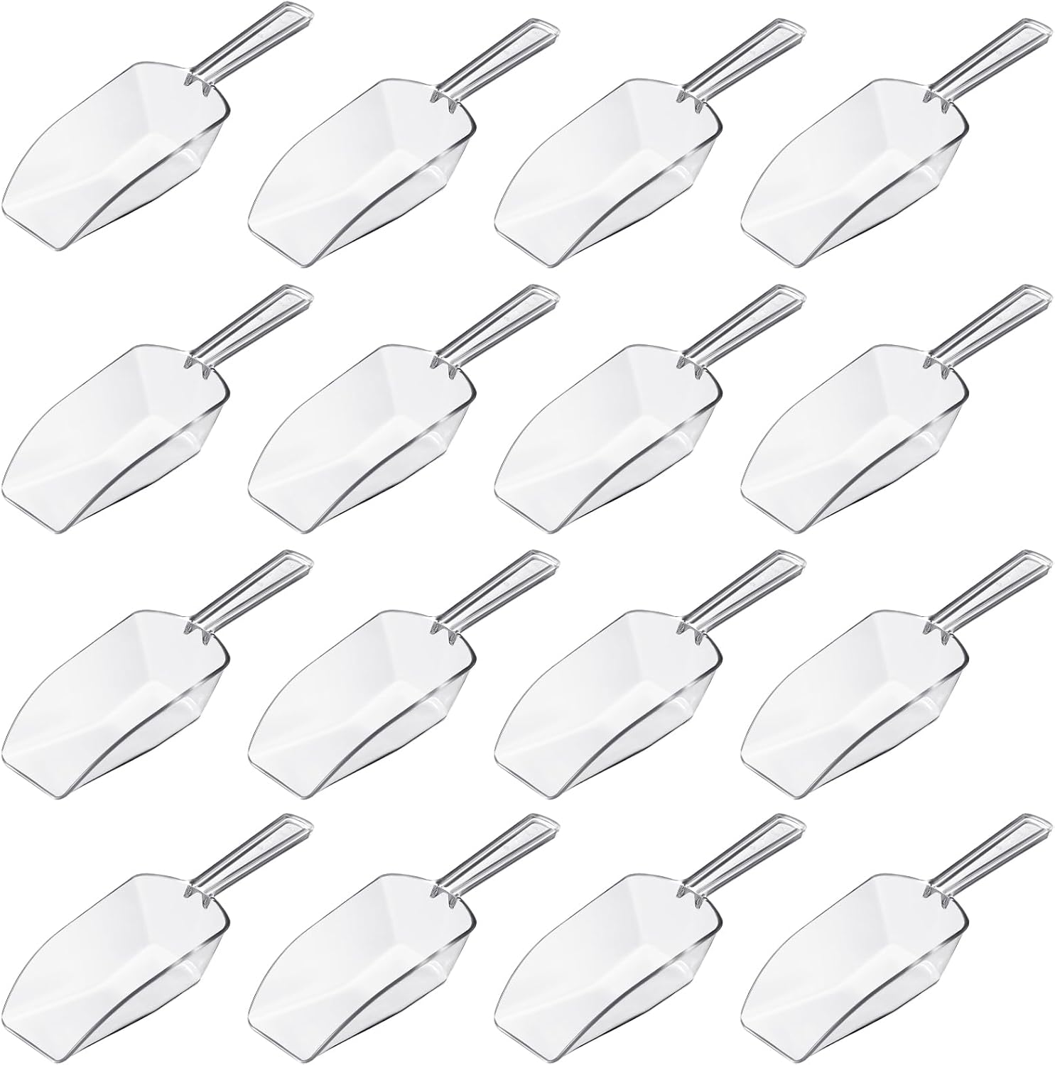 Hestya 16 Pcs Christmas Multi Purpose Clear Plastic Scoops for Candy Buffet Acrylic Kitchen Ice Food Popcorn Scoops for Protein Powders, Ice Cream, Coffee, Tea Jar (6.69 Inch)