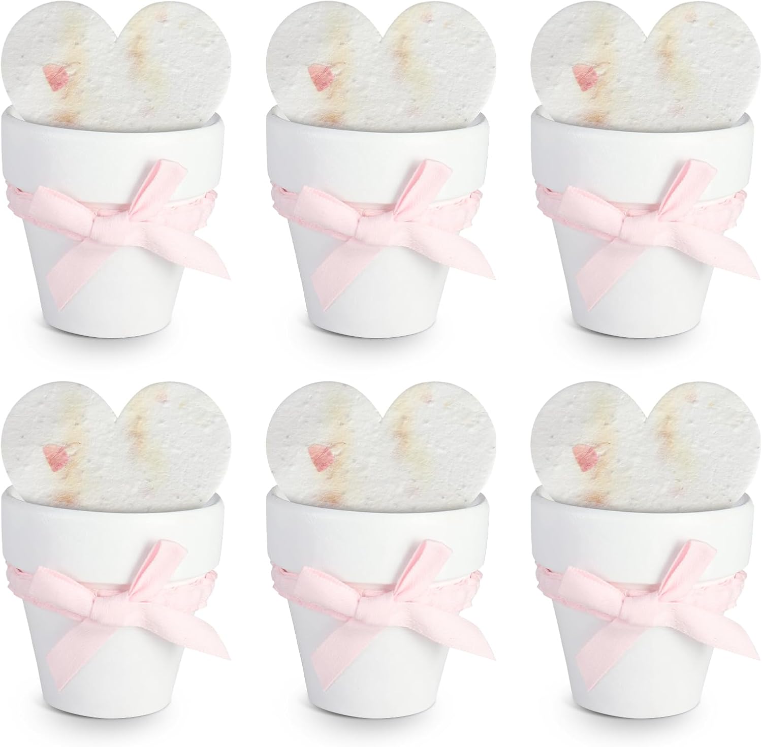 - Set of 6: Includes 6 pink heart seed paper, 6-mini pots with pink bow. Each heart is 2.85" x 2.5", and each pot is 1.5" x 2.5", ideal for pots, gardens, or outdoor spaces.