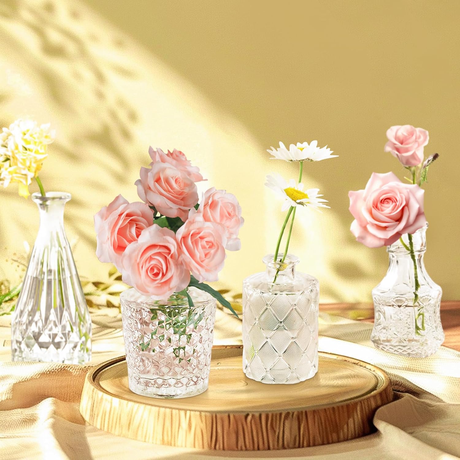 - Thick and Sturdy: Our glass vases bulk is made of thick and sturdy glass, strong and not easily broken. Each small glass vases floreros has a thickened base for stability, and the textured pattern on the surface of small vases for flowers adds a unique touch, injecting an element of sophistication to create a fun and captivating visual effect.