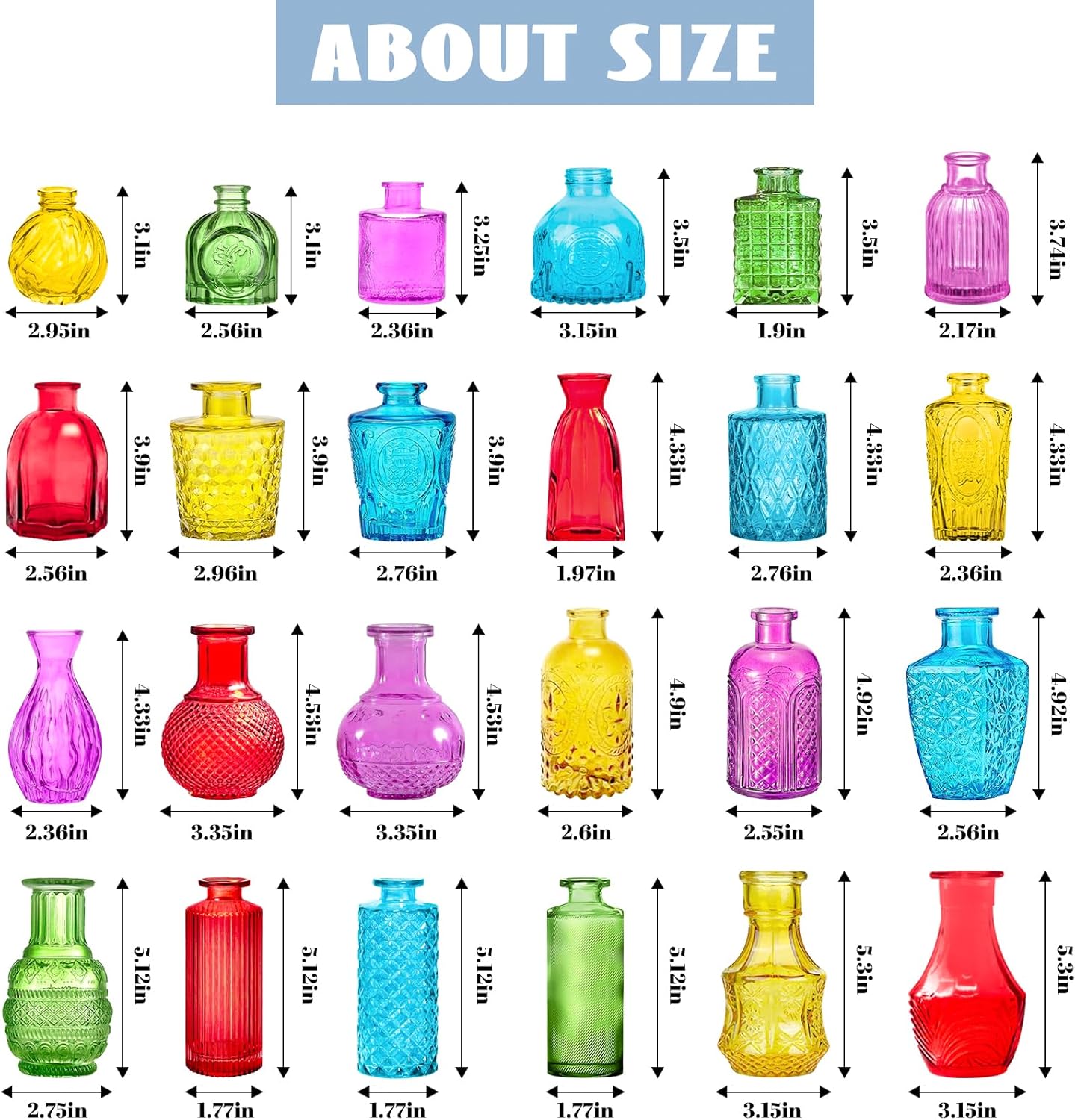 Colored Glass Bud Vases Set of 24, Vintage Small Vases for Flowers, Crystal Mini Glasses in Bulk, Small Flower Design for Centerpieces Wedding Decorations Home Flower Party Decor
