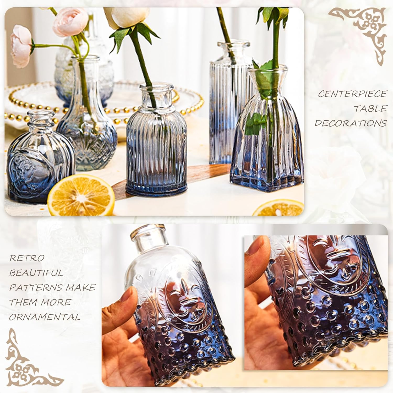 - Different Retro Designs: The set contains 24 small bud vases in bulk with different sizes, shapes and styles. The surface of mini vases bud vases in bulk are all embossed, exquisite, beautiful, unique and textured, and sparkles under the light. Note: Actual colors may vary slightly due to different monitors and lighting.