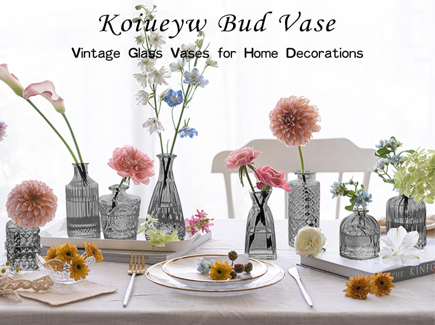 Dark Gray Bud Vases Set, 24 Pcs Vintage Small Vases for Flowers, Clear Crystal Mini Glasses in Bulk, Small Flower Design for Centerpieces Wedding Home Flower Party Decor