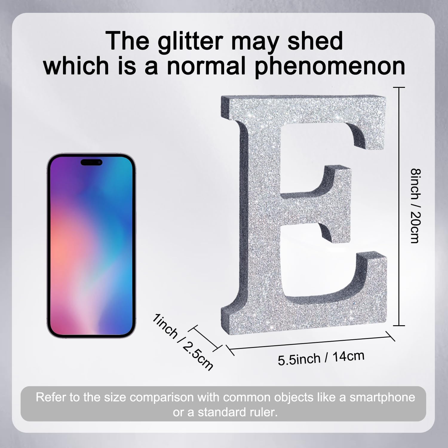 - ITEM INFORMATION AND SIZE: 1 Pcs * E Silver Glitter Letter Ornament. Size: 8 * 5.8 * 1 Inches (20*15*2.5 CM). Before purchasing, Please check the size carefully to make sure it meets your needs