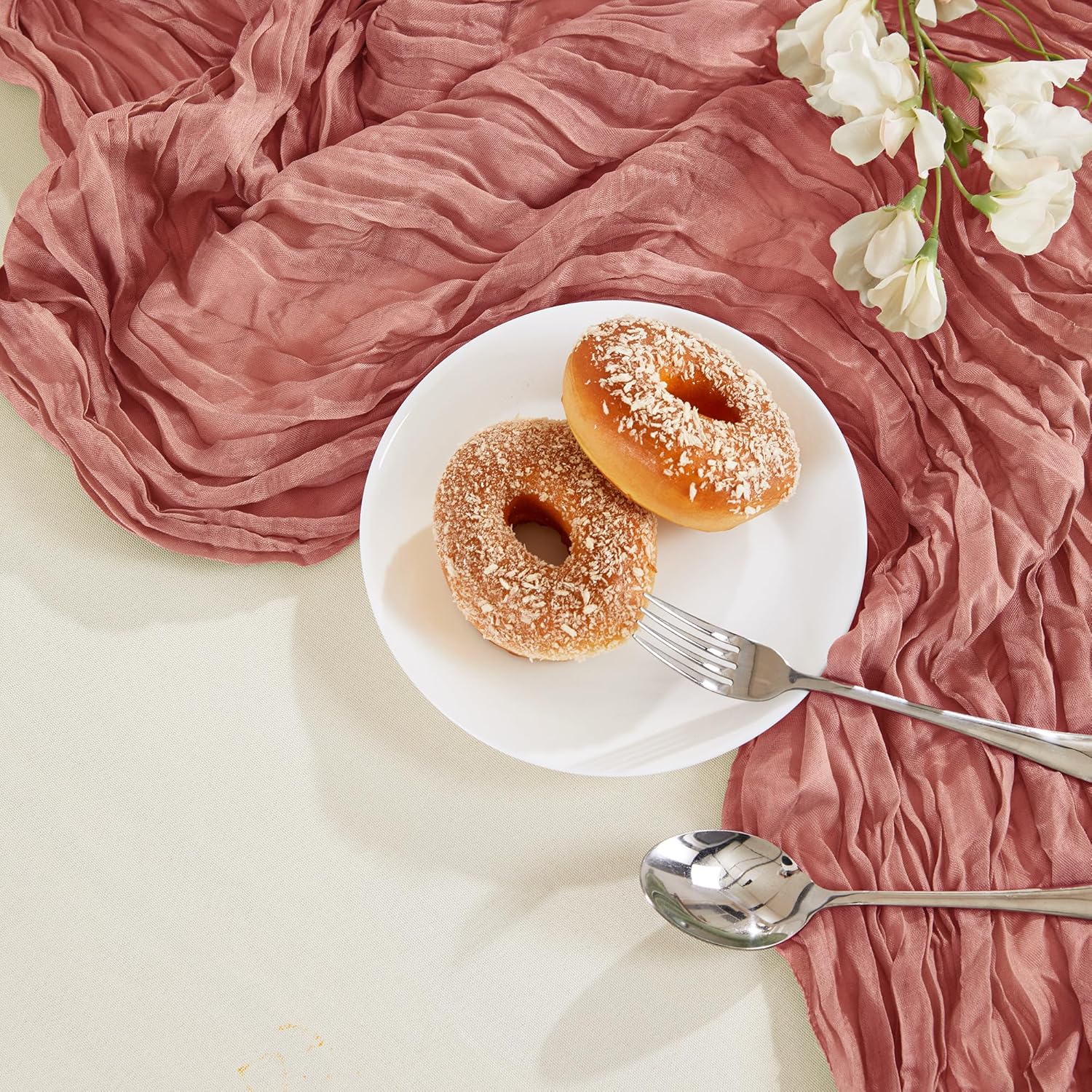 Cheesecloth Table Runner 10FT Long Boho Gauze Table Runner Rustic Sheer Runner for Wedding Bridal Baby Shower Birthday Party Table Decor Thanksgiving Christmas Decorations (12pcs, Rose)