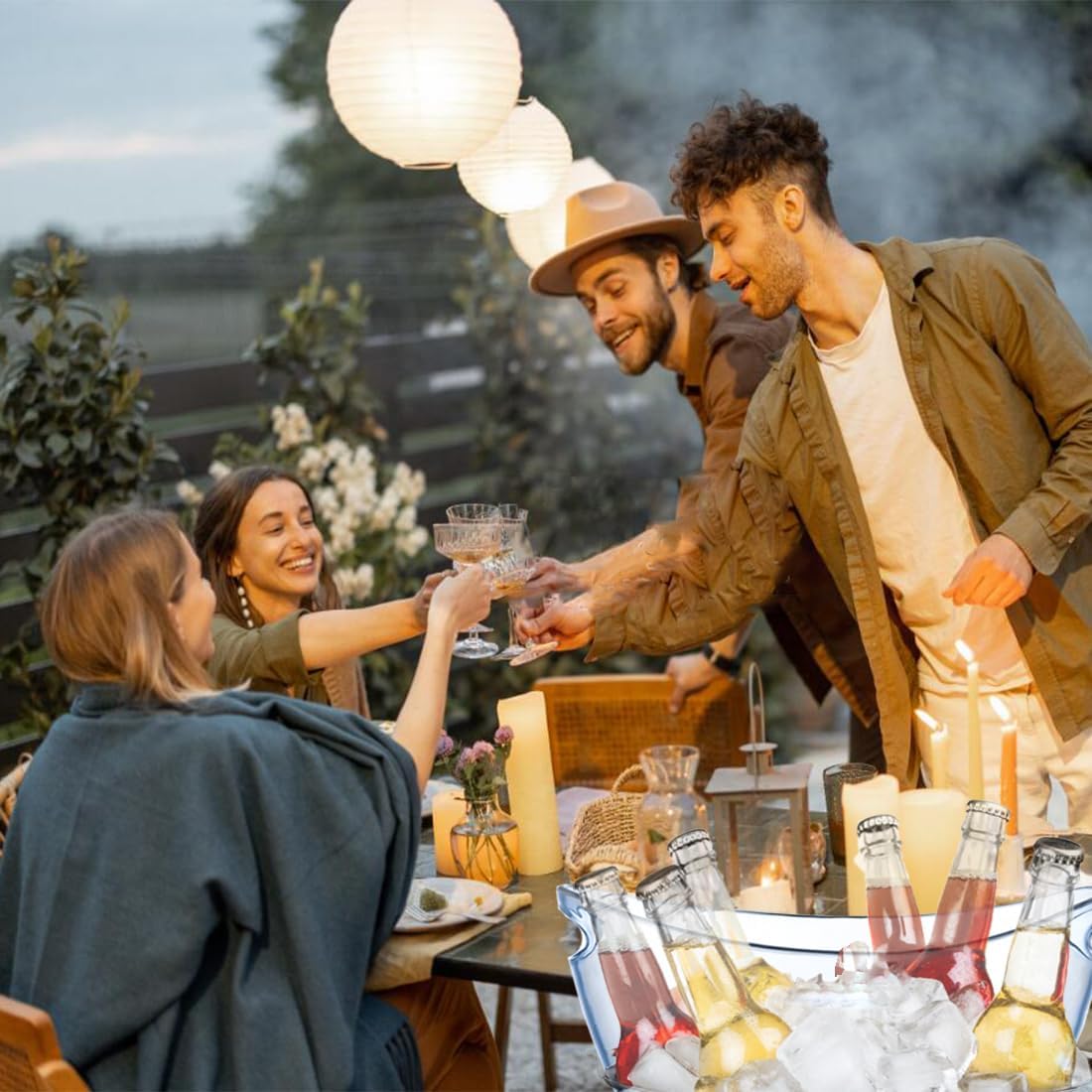 - Premium Quality & Enhanced Durability: Crafted from premium quality,thickened acrylic material, our beer bucket is built to last.The built-in handle provides easy portability, while the sturdy construction prevents leaks of water or ice.Helping to maintain the cool temperature of ice and beverages for longer periods. This feature ensures that your drinks stay chilled and refreshing, enhancing the overall drinking experience for your guests.