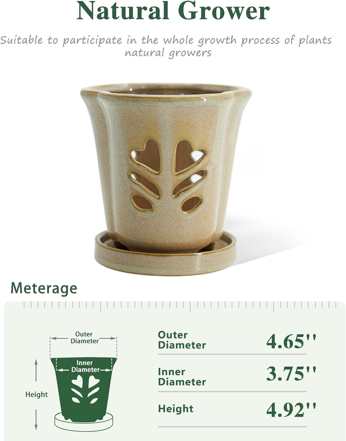- [ Premium Quality ] Orchid pots are made of high quality clay, fired 2 times at low and medium high temperatures.It's strong and durable and won't crack on its own when there's no pressure or impact. Note: The glaze on the bottom of the planter pot is not intact because of the handmade process, this is normal for ceramic planters, this will not cause seepage, cracking. Please feel free to use it.